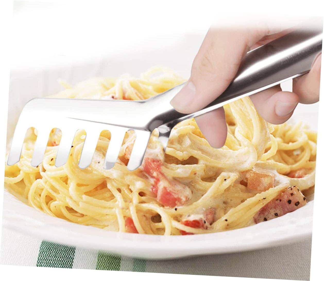 Package List 1 x Stainless Steel Spaghetti Tongs Pasta Clip Handle Salad Tong for KitchenCharacteristics Material: Stainless steel spaghetti o's.Size: 22 x 4 x 2.5cm pasta server.Color: As shown spaghetti.Suitable for daily use to pick up salad, slices of food, toast bread, steak spaghetti noodles.Expertly crafted and ergonomics design, avoid of scratching the hands spaghetti noodle.Comb shaped, help to pick up food firmly spaghetti os.high quanlity durable stainless steel, safe in food use stainless steel spoons.Can be use as barbecue grill tong, stove tong, party pastry serving tong spagmoss.Goods Informationpasta noodles You can use the cooking tong to grip bread, barbecue, ices, salad, spaghetti pasta etc.stainless steel spaghetti tongs This item is made of premium stainless steel material which is a must-have kitchen utensils for cooking, grilling and serving many types of food.serving tong A helper for BBQ fanatics, grill pro and cooking lovers