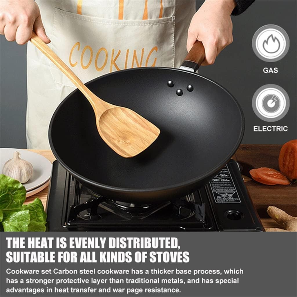 Time-saving Cleaning: Enjoy effortless cooking and cleaning with exceptional performance and ultra-nonstick coating. Product name: Cookware Set Size: As shown Material: iron, wood handle Colour: Black Package includes: 3pcs/set (other accessories demo in the picture is not included.) Easy Cleaning: While our cookware is dishwasher-safe for your convenience, we highly recommend handwashing. A simple r or quick wipe effortlessly removes any residue, ensuring your cookware remains spotless and maintains its pristine condition with ease.