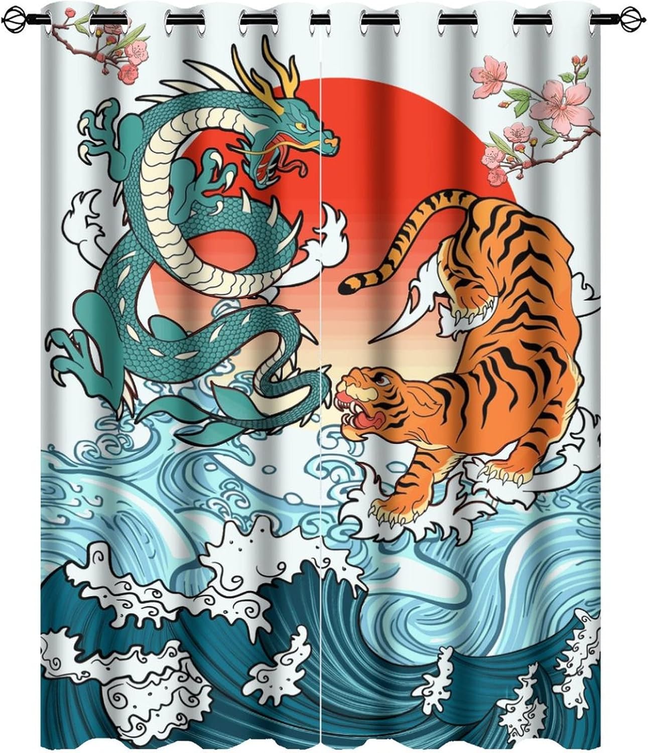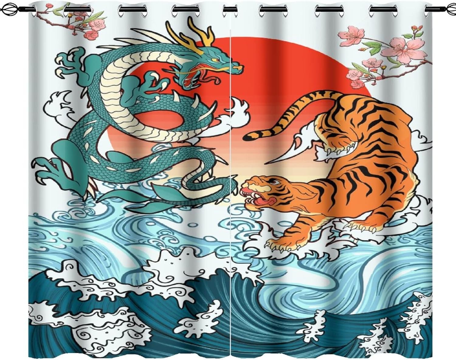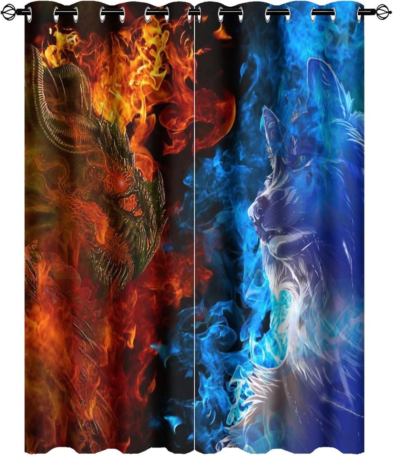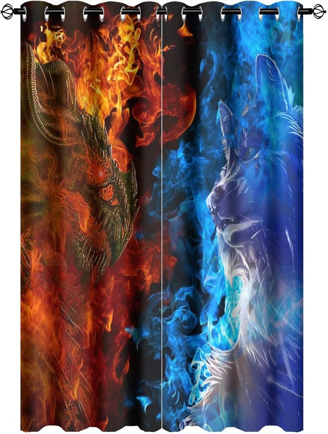 This Cool Dragon Wolf Curtains can block out 85%-99% sunlight and UV ray ( Darker colors work better), perfect for late sleepers and afternoon naps. Our energy saving curtains insulate against summer heat and winter chill to balance your room temperature, reduce outside noise .Kazynee Custom Design Shop:Our curtains Immerse your home in splashes of color.The 3d print curtains give off a realistic tint in the whole room and turns the room into a magical colorful fairy-scape.Premium Material:Adopt high-quality 100% polyester fabric.Three-layer woven fabric, high-precision black silk shading partition,density of the middle black silk layer is double that of ordinary fabrics, greatly improve the shading effect.HD Printing Technology:High resolution pictures bring a perfect visual experience to your life.Industry-leading HD printing technology, No strange odor. Toxic free and safe.Easy Cleaning:This blackout curtains machine washable, gently cycle, no bleach, tumble dry low, and iron at low temperature settings.Kindly Remind:- Don't use sharp things scratching curtains.- For proper fullness panels should measure 1.5-2 times the width of your window.- 24 Hours customer support.- As different computers display colors differently, the color of the actual item may vary slightly from the above images.