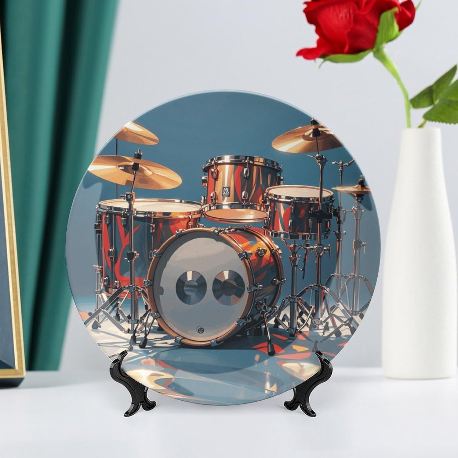 Our versatile ceramic Cool Drum Set plates are made of smooth ceramic material. The lightweight bone china plates can be easily placed anywhere you like, showcasing their decorative charm.This bone china dessert plate is available in four sizes: 6 inches, 7 inches, 8 inches, and 10 inches, making it an ideal choice for display items.Personalized decorative plates, perfect for displaying handicrafts, are an ideal choice for home décor. This vertical ceramic plate makes a wonderful gift for housewarmings, anniversaries, weddings, birthdays, Thanksgiving, New Year's, or any holiday.This French country-style ceramic plate is suitable for decorating or using in living rooms, offices, hallways, dining rooms, entrances, hotels, holiday homes, and other places.