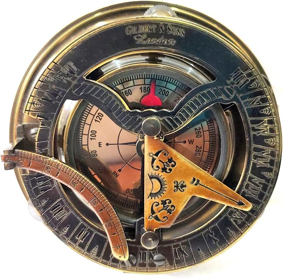 Copper Antique Black Size 3 Inch Brass Sundial Compass Antique Finish Antique Steampunk Wrist Brass Compass & Sundial Hand Watch Nautical Compass