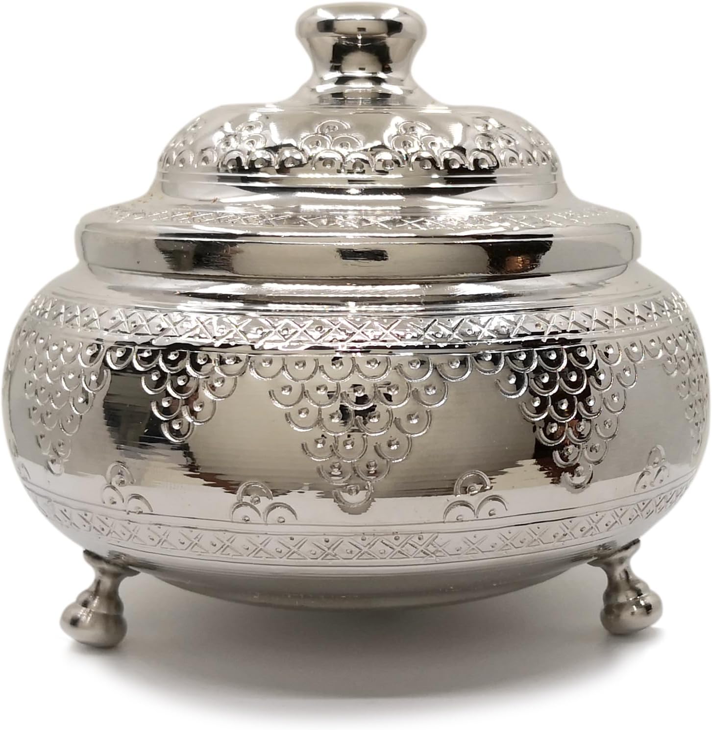 Product Description: Indulge in the timeless elegance and superior craftsmanship of our Copper Sugar Bowl collection, designed to add a touch of sophistication to any kitchen setting. Meticulously handcrafted from high-quality copper, each piece in this collection is not just a functional kitchenware item but also a striking decorative element that reflects your unique taste. The sugar bowl's interior is tin-plated, ensuring a healthy storage environment for your sugar, spices, or coffee grounds, preserving their freshness and flavor. Style Variations: Copper Color - Punched Grapes Pattern: Embellished with a delightful grapes pattern. Copper Color - Chiseled Floral Pattern: Features an intricate floral design, meticulously chiseled to add an elegant and sophisticated touch. Copper Color - Hammered: The classic hammered finish offers a rustic yet refined aesthetic, perfect for those who appreciate traditional craftsmanship. Nickel Plated - Punched Grapes Pattern: This version combines the durability of copper with the sleek, modern appeal of nickel plating, adorned with the charming grapes pattern. Nickel Plated - Chiseled Floral Pattern: Offers the lustrous sheen of nickel plating, complemented by the delicate chiseled floral motif for a contemporary twist. Nickel Plated - Hammered: Merges the timeless hammered texture with the modern elegance of nickel plating, suitable for any modern kitchen decor. Tin Plated - Chiseled Floral Pattern: Features a unique tin-plated exterior with the intricate chiseled floral design, offering a distinctive look while ensuring optimal health benefits. Care Instructions: Hand Wash Recommended: To preserve the integrity of the bowl's finish, hand washing is recommended. Use warm soapy water and a soft sponge or cloth to gently clean the bowl. Dry Immediately: After washing, dry the bowl immediately with a soft, dry cloth to prevent water spots and maintain its luster. Avoid Abrasive Cleaners: To maintain the unique finishes, avoid using abrasive cleaners or scouring pads that may scratch the surface. Polishing: If the outer copper surface begins to tarnish, use a copper polish to restore its shine. For nickel and tin-plated surfaces, a gentle polishing with a soft cloth should suffice to maintain their sheen. Interior Care: The tin-plated interior is designed for safe food storage. Avoid using sharp utensils that may scratch the tin lining. If necessary, a light polish with a suitable food-safe product can help maintain its appearance. With its combination of functional elegance, diverse styles, and easy-care instructions, this Copper Sugar Bowl collection is sure to be a cherished addition to your home or a thoughtful gift for someone special.