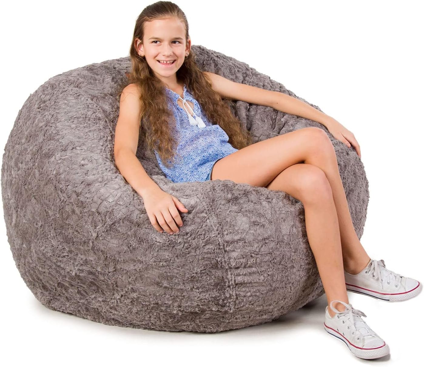 With CordaRoy's Faux Fur Bean Bag Chair, a great night's sleep is in the bag! As seen on Shark Tank, this is an ideal bean bag chair for adults and children alike. The fun seating and sleeping solution is perfect for your for your living room, guest room, kid's room, basement, and more! The convertible chair changes from big bean bag chair to full-size bean bag bed in no time! To turn the chair into a bed, simply unzip the safe-lock zipper, remove the cover, and flip inner cushion. Fold and slide the cushion into cover to convert back to the original bean bag shape. So easy, the kids can do it! CordaRoy's Faux Fur Bean Bag Chair is made of the highest quality materials for your comfort. The super plush, fuzzy fur cover is durable for a lifetime of use while remaining luxuriously soft. The grey color looks great with any decor style. When it is time for a refresh, simply toss the cover in the washer and dryer for a convenient clean. The fabric remains soft no matter how many times you wash! At CordaRoy's, we use furniture-gradefoam that is extremely long lasting yet soft and supportive. This means the inside of your convertible chair is made with the highest quality foam that provides conforming comfort whether you are reading, watching a movie, sleeping, or just hanging out. CordaRoy's Faux Fur Bean Bag Chair is compressed for convenient shipping straight to your doorstep. To set up your CordaRoy’s product, carefully remove the bed from the plastic and place inside the chair cover, ideally as soon as possible so the filling can decompress as intended. Please note that while the foam bed may look flat at first, it will expand within 3-7 days depending on the product size. Help activate and break apart the foam by fluffing, massaging, and scrubbing together the lumps from the outside. Use as normal for the next few days, and watch how your CordaRoy's bed continues to break down and get softer! The convertible chair comes complete with (1) Full Chair Cover and (1) Full Bed Insert, everything you need to get comfortable right away. Bean bag chair seats 1 adult (42" wide). Full bed sleeps 1 adult (54" x 75" x 8").