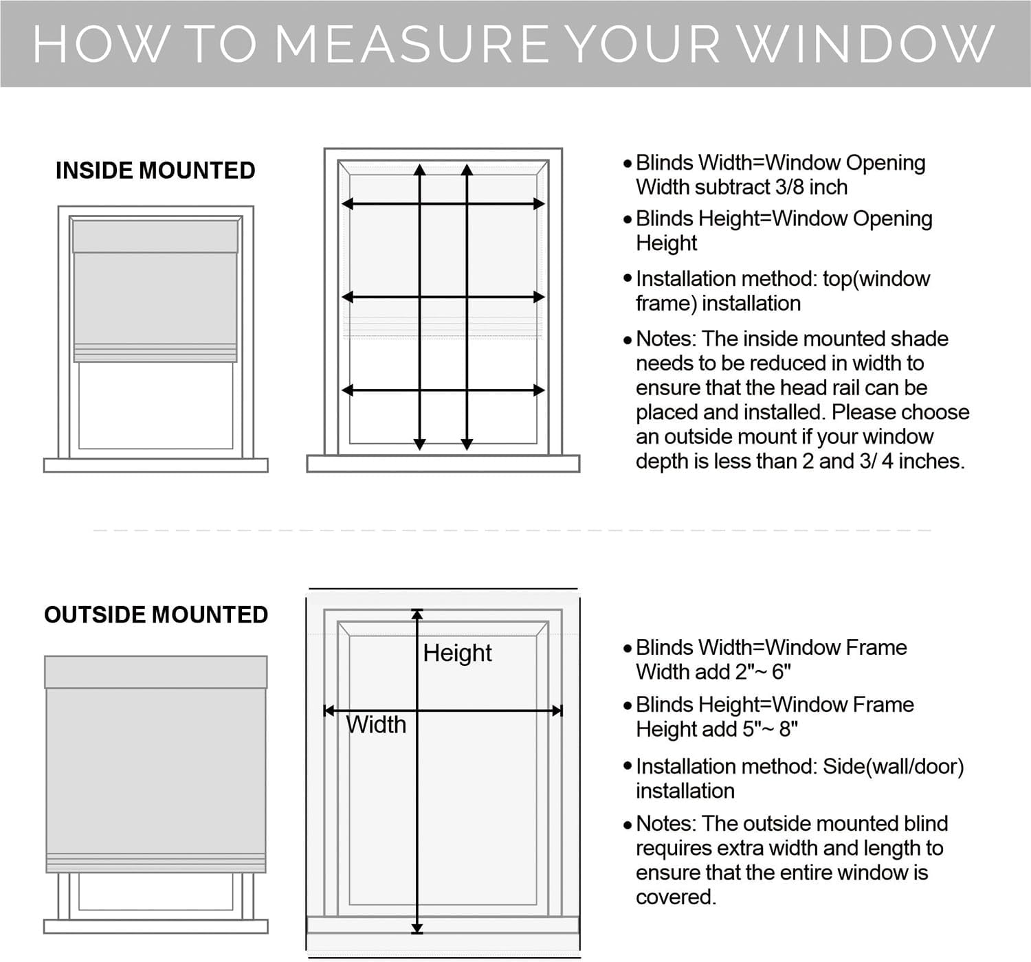 | Mounting Type | Inside Mount, Outside Mount |
