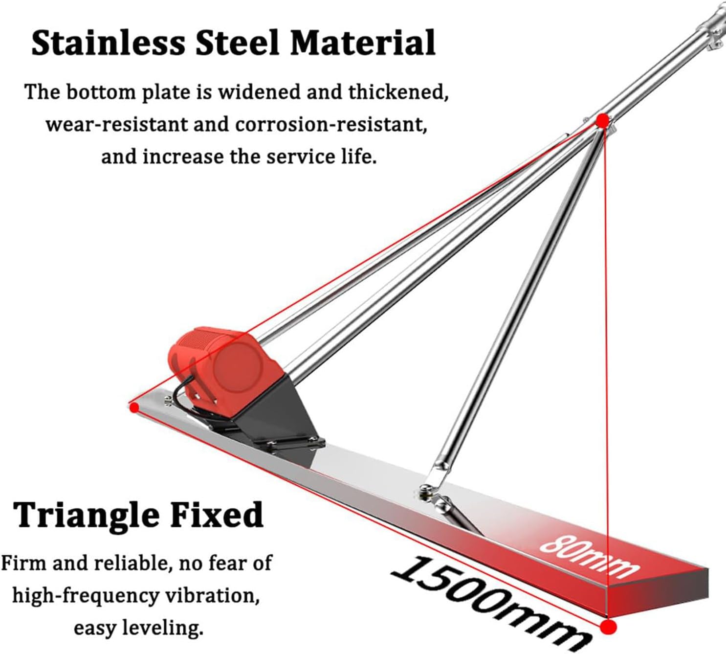 Transform your concrete leveling projects with our Electric Concrete Scraper, designed for efficiency and precision. This advanced 5ft Concrete Leveling Tool features a 9-position adjustable system, allowing you to tailor the vibration frequency to match various cement grout hardness levels. The powerful pure copper high-frequency vibration motor delivers reliable performance for all your concrete tasks. Crafted with a durable stainless steel scraper, this tool ensures longevity and resistance to corrosion, making it an ideal choice for construction, landscaping, and agricultural applications. The high-definition display screen allows for easy monitoring and intuitive control, enhancing your user experience. Operating at impressive speeds of 3000-6000r/min, our Vibrating Concrete Leveling Tool is powered by a robust 48V brushless motor, providing you with the strength needed for efficient leveling and finishing. Choose from scraper lengths of 1m, 1.2m, or 1.5m to meet your specific project requirements, with an 8cm width for precise leveling every time. To further support your work, this tool includes a 6000 mAh battery and all necessary installation accessories, ensuring you have everything you need for a seamless operation. Elevate your concrete leveling experience and achieve professional results with our Electric Concrete Scraper.