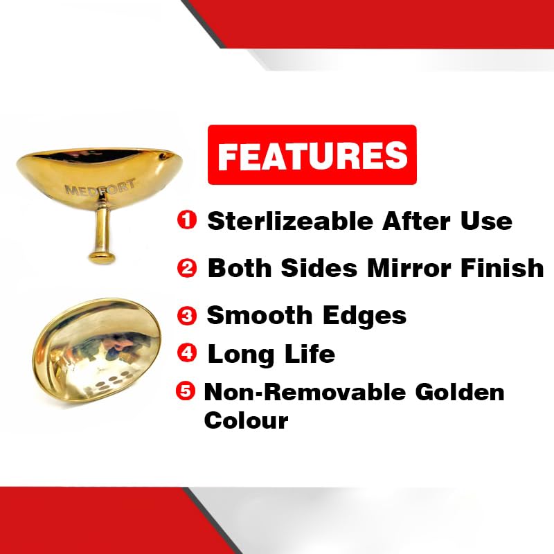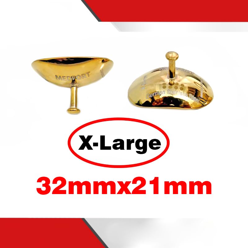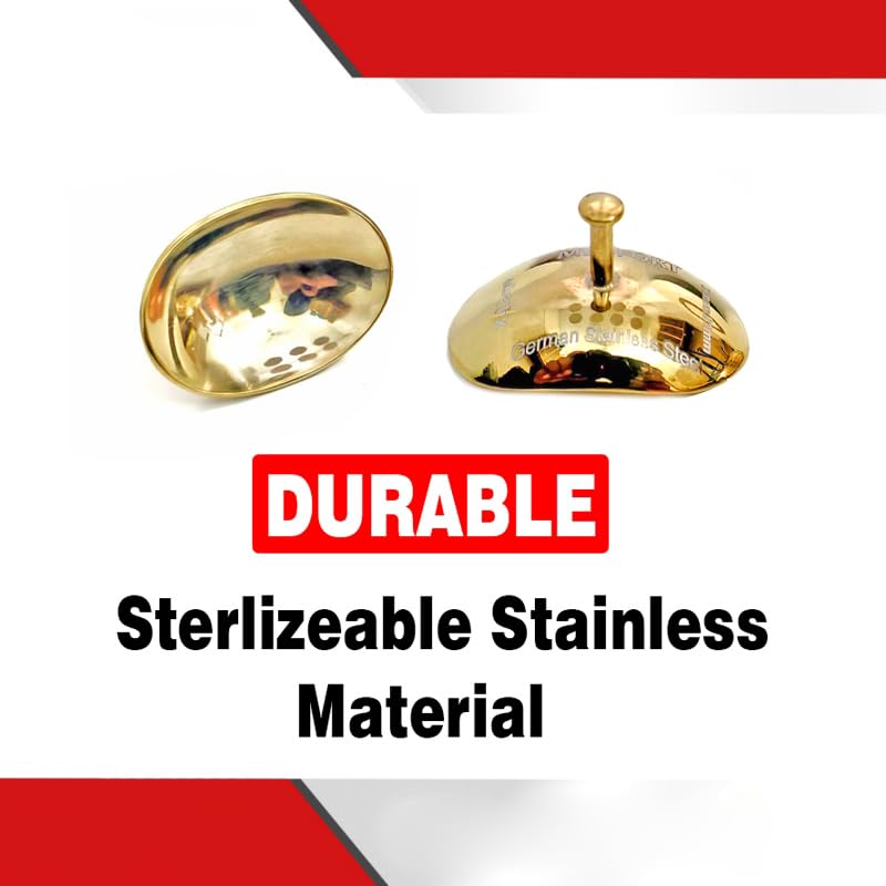 Protect your patients' eyes during medical procedures with these premium Medfort-Instruments Corneal Eye Shield Protectors. This set includes two high-quality stainless steel shields finished in an elegant gold color. Each shield measures 32mm x 21mm (X-Large size), providing comprehensive coverage for various procedural needs. The shields feature a convenient holding point for precise placement and manipulation during use. The durable stainless steel construction ensures reliable protection, while the smooth surface helps maintain patient comfort. These professional-grade eye shields come packaged in a sleek Medfort-Instruments box, making them perfect for medical facilities, surgical centers, and professional practices. The extra-large size makes these shields particularly suitable for procedures requiring broader eye area coverage. Keep your medical supplies well-stocked with these essential corneal protectors that combine functionality with superior craftsmanship.