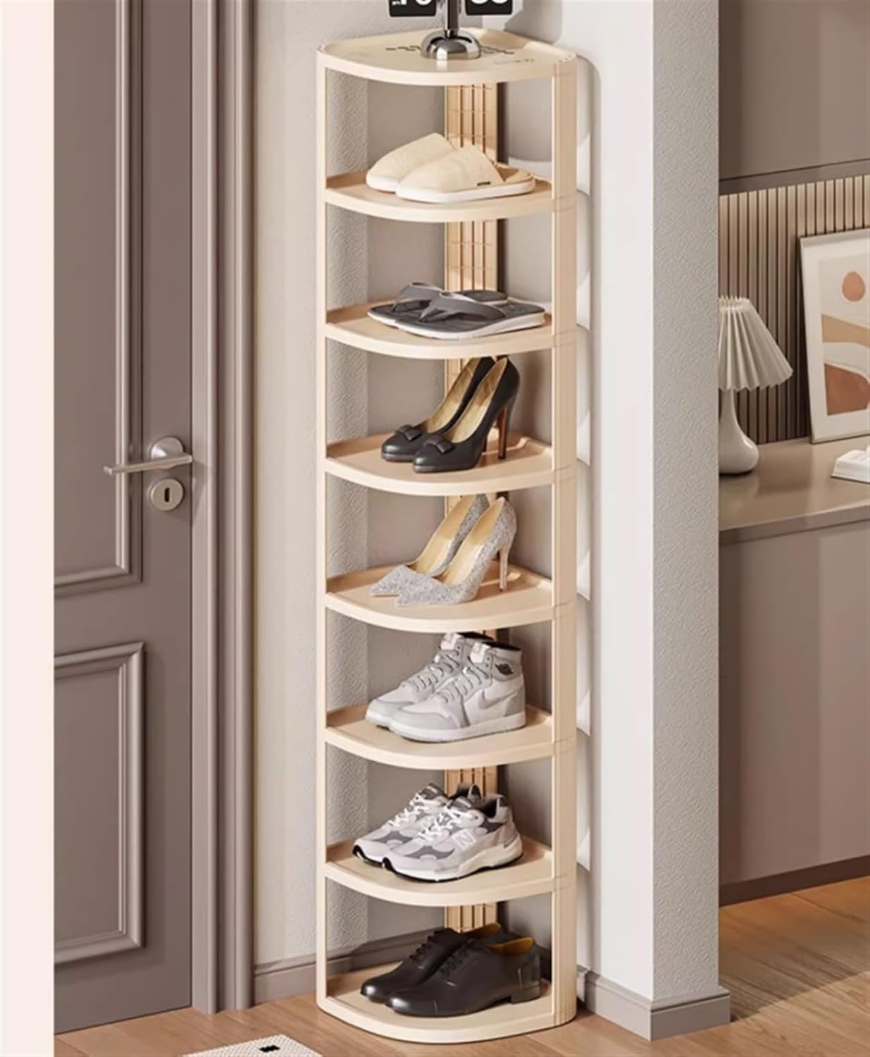 Turn any corner into a functional, fashionable showcase without sacrificing valuable floor space. Specification: Product Name: Corner Shelf / Corner Stand / Corner Shelves / Corner Rack Material: Plastic Product Size: 6 Tier: 28*28*87cm , 7 Tier: 28*28*104cm, 8 Tier: 28*28*121cm Can accommodate: bathroom storage, kitchen storage, bedroom storage Applicable space: living room, bedroom, home office, kitchen, hallway, balcony, bathroom Package List: 1 x Corner Shelf (Excluding other decorations) Multifunctional Corner Shelf: Provides a chic solution for displaying mementos, plants, books, and other decorations. Perfect for living room, kitchen, hallway, home office, or any space needing a touch of sophistication.