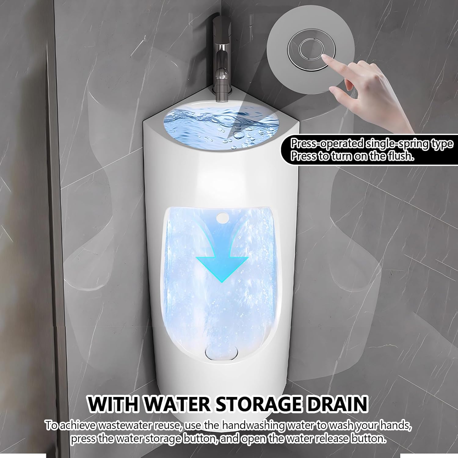 Corner Urinals For Men Bathroom, Wall Mounted Adult Urinal Intelligent Sensor Toilet Splash-Proof With Wash Basin And Faucet, Public ToiletsThis corner urinal for men’s bathrooms is the perfect combination of modern design, hygiene, and efficiency. With its wall-mounted intelligent sensor flush system, it ensures automatic flushing after every use, saving water while keeping the environment clean and odor-free.The splash-proof structure reduces mess, while the unique integrated wash basin with faucet option provides added functionality and convenience in compact restroom layouts. Whether installed in a hotel, shopping mall, school, bar, hospital, office, or restaurant, this urinal delivers a professional and sanitary solution. Its corner-mounted design helps maximize available space while maintaining a sleek and modern appearance.Please Note:1. Due to different measurement methods, there may be an error of 1-3CM, which is within the normal range. Please refer to the actual product!2. Due to different monitors, the product may have a slight color difference, please understand