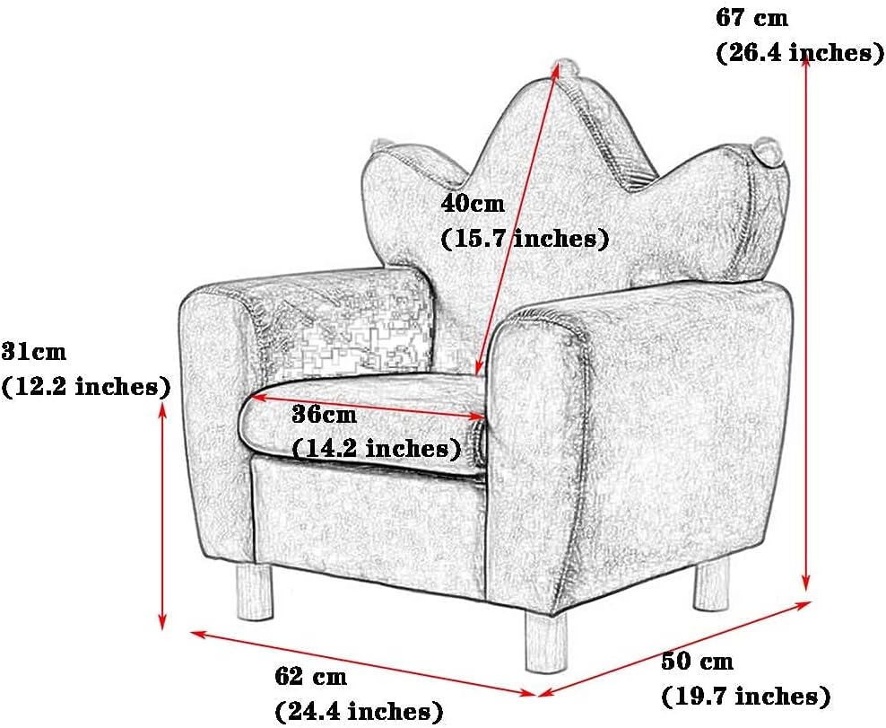 It's time to add a seat exclusively for your little boys and girls! This is a sofa/armchair with a unique design, specially designed for little boys and girls over 6 months. It is safe and has good ornamental value at the same time Imagine your little angel sitting in a soft and comfortable chair. What can they do? Study, watch TV, eat snacks, entertainment, parties, etc.They will be very happy and satisfied with it 【Product Manual】 ★Name:Sofa Chair Plush /📥Armchair ★Color:Pink , Blue , Green , Gris ★Fabric material:Ice velvet ★Frame material: Rubber wood ★Inner filling:high-density sponge ★Size:67*50*62cm(26.4*19.7*24.4in) ★Bearing weight:60KG ★Product list:1 ★Applicable scenarios: living room, bedroom, nursery, kindergarten, photo studio, playground ★Applicable age: more than 6 months ★Features:Soft and comfortable, Easy to clean,Crown shape design,home decoration notebook: 1. We only sell sofa chairs/armchairs, the others are props 2. Due to the use of different shooting tools, slight color errors may occur. This is not a quality issue. Please refer to the actual product 3. Because it is manual measurement, the error is 1-3cm, please refer to the actual product, please understand 4. We have many similar popular products, please click to enter our store, we will tell you the unique styles and featured products