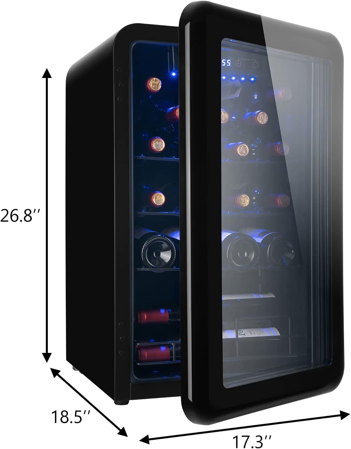 Appliance Type:Wine Cooler/Cellar Product Dimensions:17.3''(L) x 18.5''(W) x 26.8''(H) Width with Door Open:35.8'' G.W / N.W.:61.73 lbs/ 54.03 lbs Input:110-120V / 60Hz Watts:44W Bottle Storage Capacity:24 Tempe range:39℉-72℉ (Default54℉) Material:Integrally formed Stainless Steel+Tempered Glass Panel Ready:Yes Operational Features:LED Digital Touch Cooling Unit Type:Compressor Based Tempe Zone:Single Zone (with Adjustable Shelves) Defrost Type:Frost Free