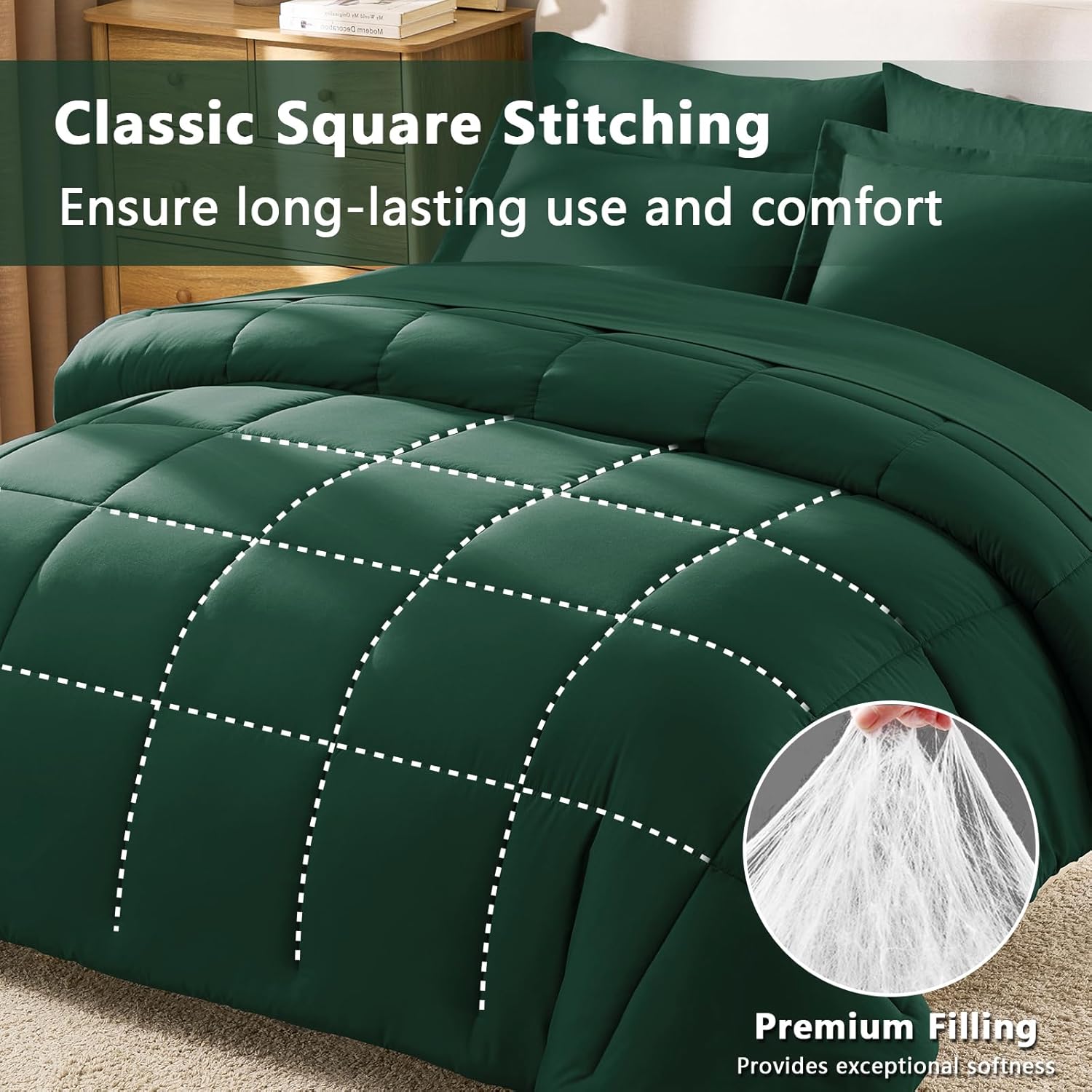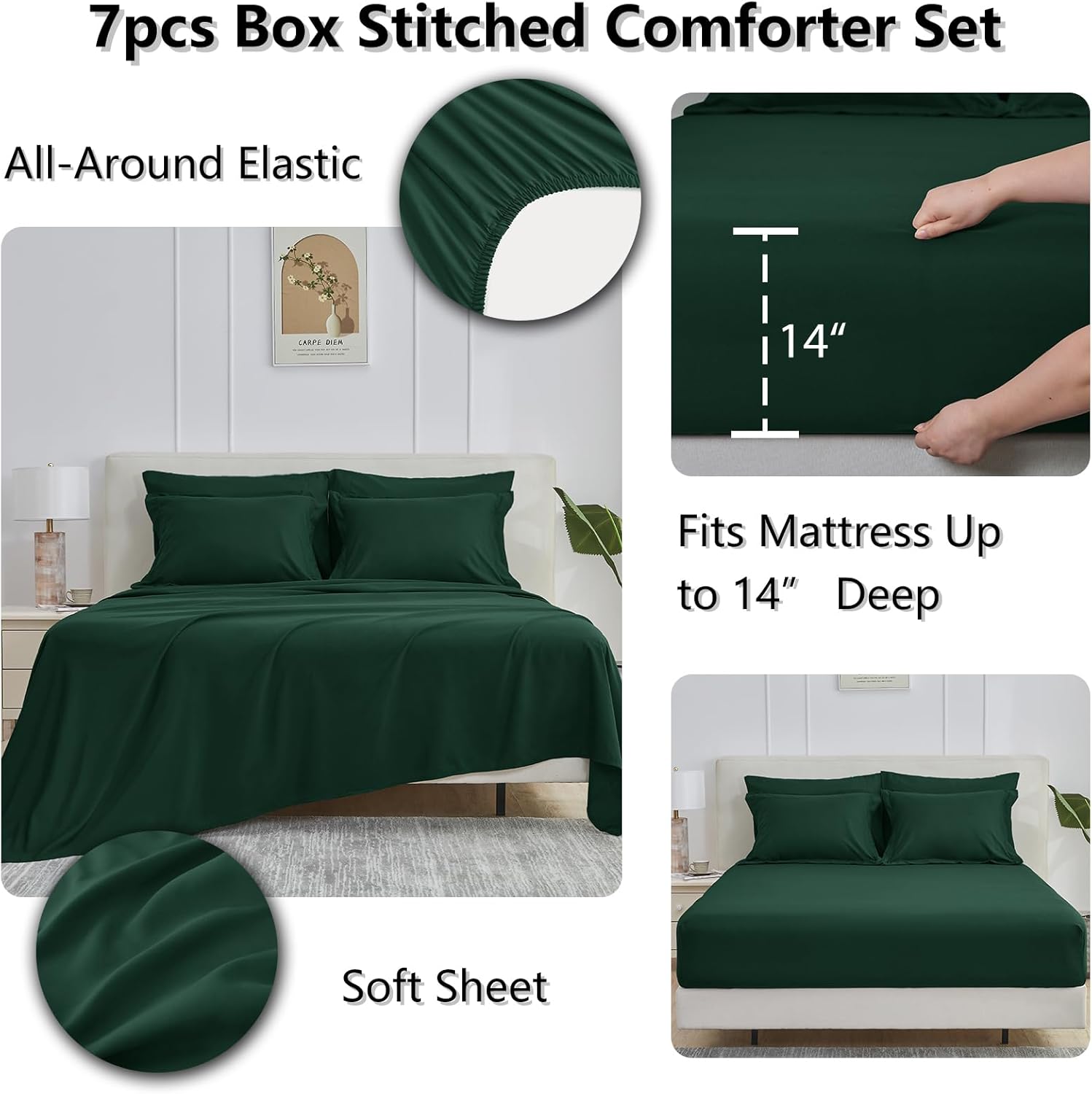 | Included Components | Comforter, Fitted Sheet, Flat Sheet, Pillow Cover, Pillow Sham |
