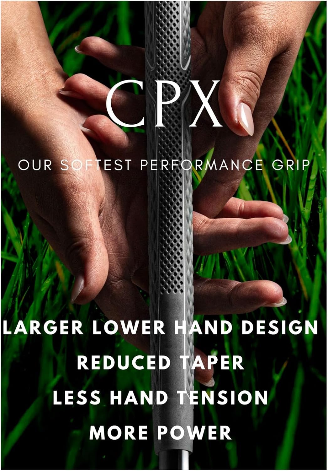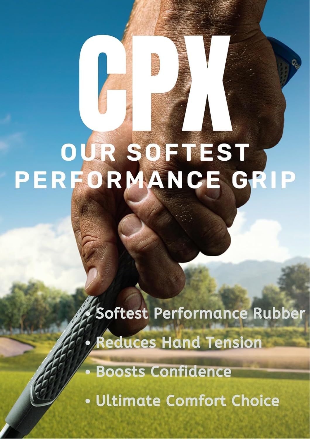 Experience superior comfort and control with the CPX Golf Club Grips, featuring an innovative diamond-quilted texture pattern that delivers exceptional tactile feedback. These premium rubber grips incorporate Plus4 technology, simulating four additional wraps of tape in the lower hand to reduce tension and promote lighter grip pressure. The soft, tacky feel not only dampens unwanted vibrations but also enhances power throughout your swing, giving you more confidence when it matters most. Each grip in this 13-piece set measures 11 inches in length and 1 inch in width, providing ideal sizing for most golf clubs. At just 2.4 ounces per grip, the lightweight design maintains perfect club balance while offering outstanding responsiveness. The larger outer diameter in the lower hand increases stability, while the all-rubber construction ensures lasting durability. The sleek grey and blue color combination adds a professional touch to your club set. Whether you're a casual player or serious golfer, these grips deliver the perfect blend of comfort, control, and performance to help elevate your game.