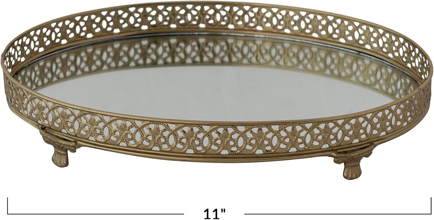 | Item Type Name | Creative Co-Op Oval Metal Filigree Footed Tray with Mirror, Gold Finish |