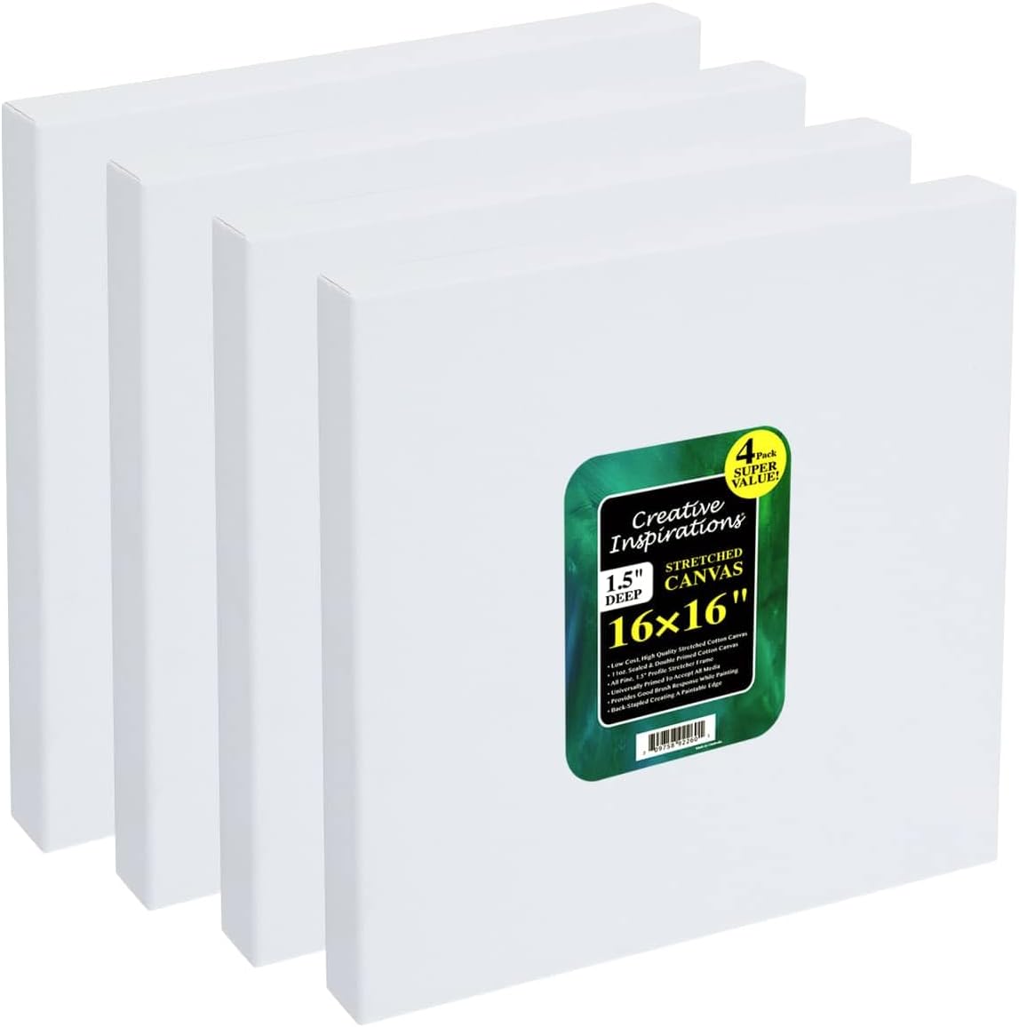 Discover the perfect canvas for your artistic needs with the Creative Inspirations Gallery Stretched Canvas 1-1/2" Deep. This exceptional product is designed for artists and professionals who seek reliable and cost-effective solutions for their creative endeavors. Our stretched canvas for painting packs offer an ideal combination of quality and affordability, making them a must-have for painters of all skill levels. Crafted from 100% cotton canvas, each piece is carefully sealed and double-primed to ensure a smooth, medium-textured surface suitable for a variety of media, including acrylics, oils, alkyds, and mixed media. The 11 oz. pre-stretched canvas provides a robust and durable foundation for your artwork, allowing you to bring your vision to life with confidence. The universally primed surface ensures compatibility with all types of paint, offering versatility for your creative projects. The gallery-style 1-1/2" deep stretcher frame is constructed from pine, providing sturdy support and a professional appearance. Rust-resistant staples secure the canvas to the frame, ensuring longevity and durability. The paintable edge allows for a seamless, continuation of artwork onto the sides, adding depth and dimension to your creations. The archival all-media primer used in our canvases ensures that your artwork remains vibrant and preserved over time. The cotton duck canvas provides a reliable surface that withstands the rigors of various painting techniques, making it an excellent choice for artists who demand consistency and dependability in their materials. Ideal for both professional artists, art businesses, and hobbyists, the Creative Inspirations Gallery Stretched Canvas caters to those who seek a blend of economy and performance. Whether you're working on a series of paintings or a single masterpiece, our stretched canvases for painting offer the perfect solution to meet your artistic needs.