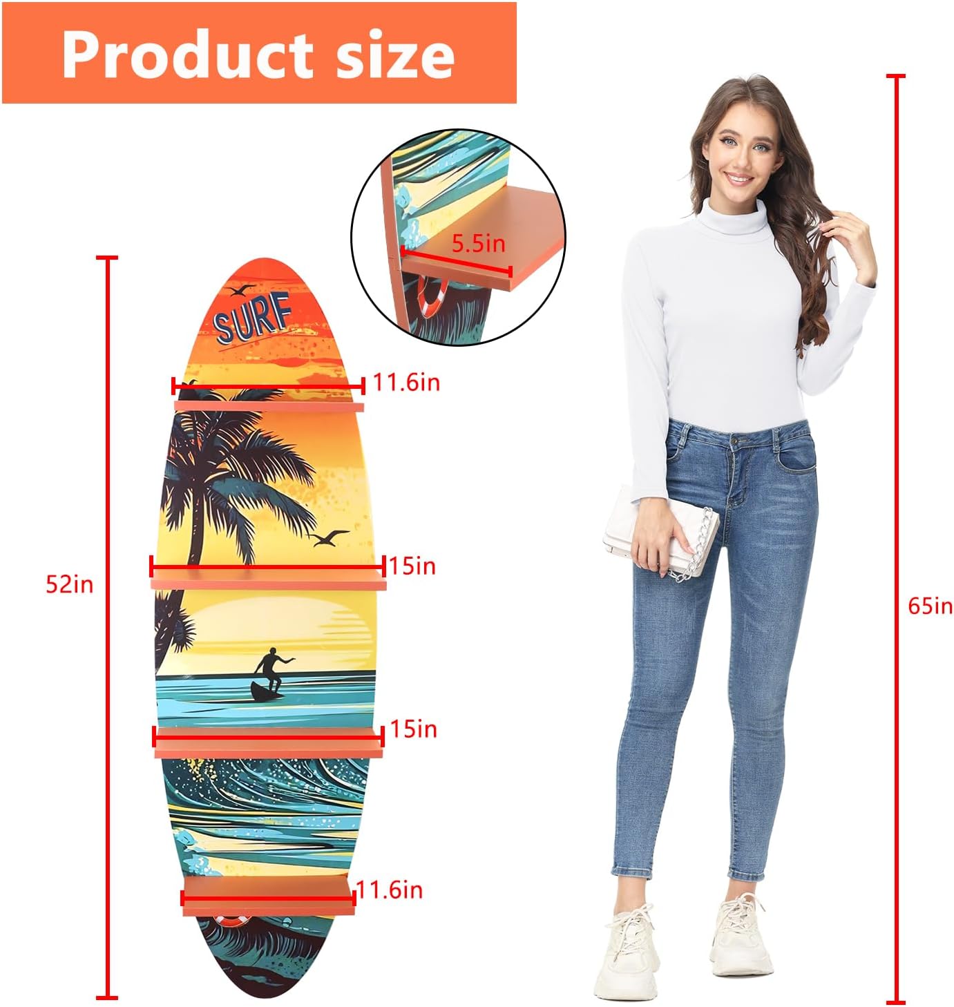 Creative Surfboard Wall Shelf for Wall Decor & Storage, Vertical Floating Shelf, Decorative Beach Style Lack Wall Shelves
