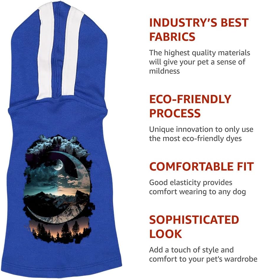 Make sure your fur babies are always warm and comfy. Crafted using a blend of breathable cotton and polyester, Crescent Moon Design Dog Shirt with Hoodie helps retain your dog’s body heat amidst the cold breeze of autumn and winter, or when you take them outside on a chilly night. Soft and stretchy, Nature Dog Hoodie will feel like an incredibly comfortable whole-body hug, which may help your dog relax when they’re feeling stressed.
