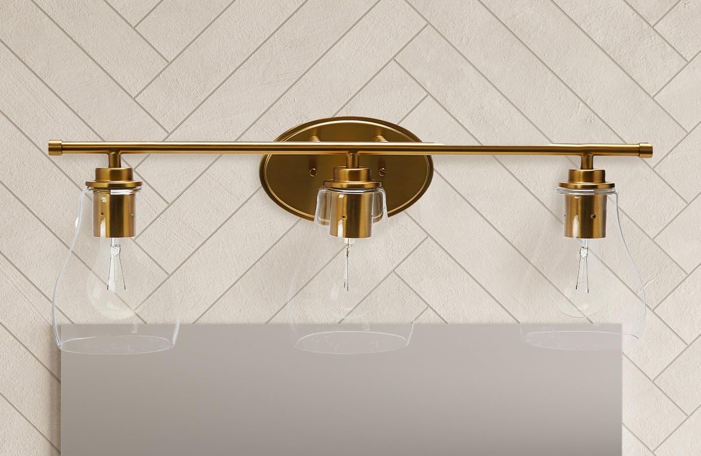 | Model Name | Robert Stevenson Lighting Creston - Metal and Glass 3-Light Vanity Light, Brushed Gold |