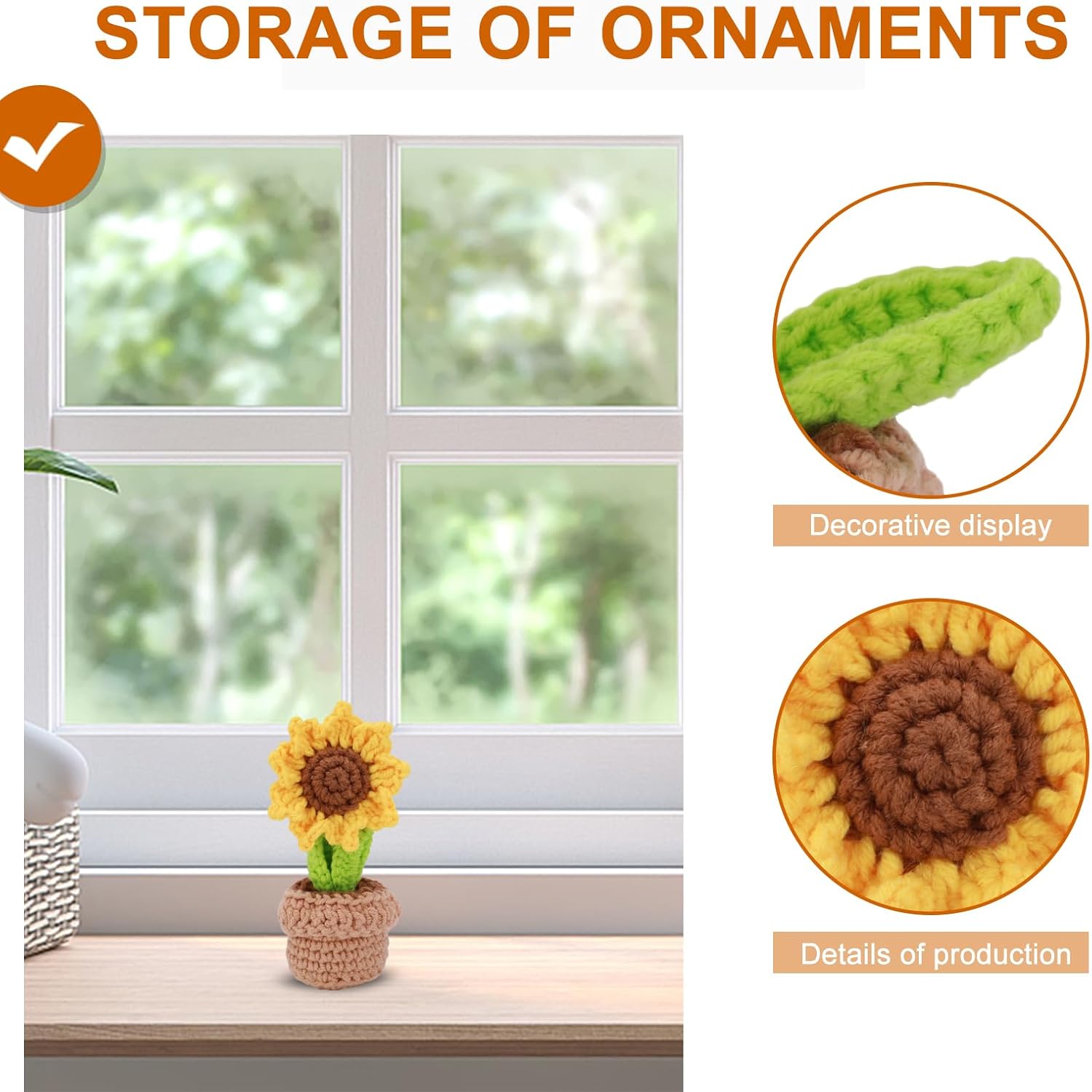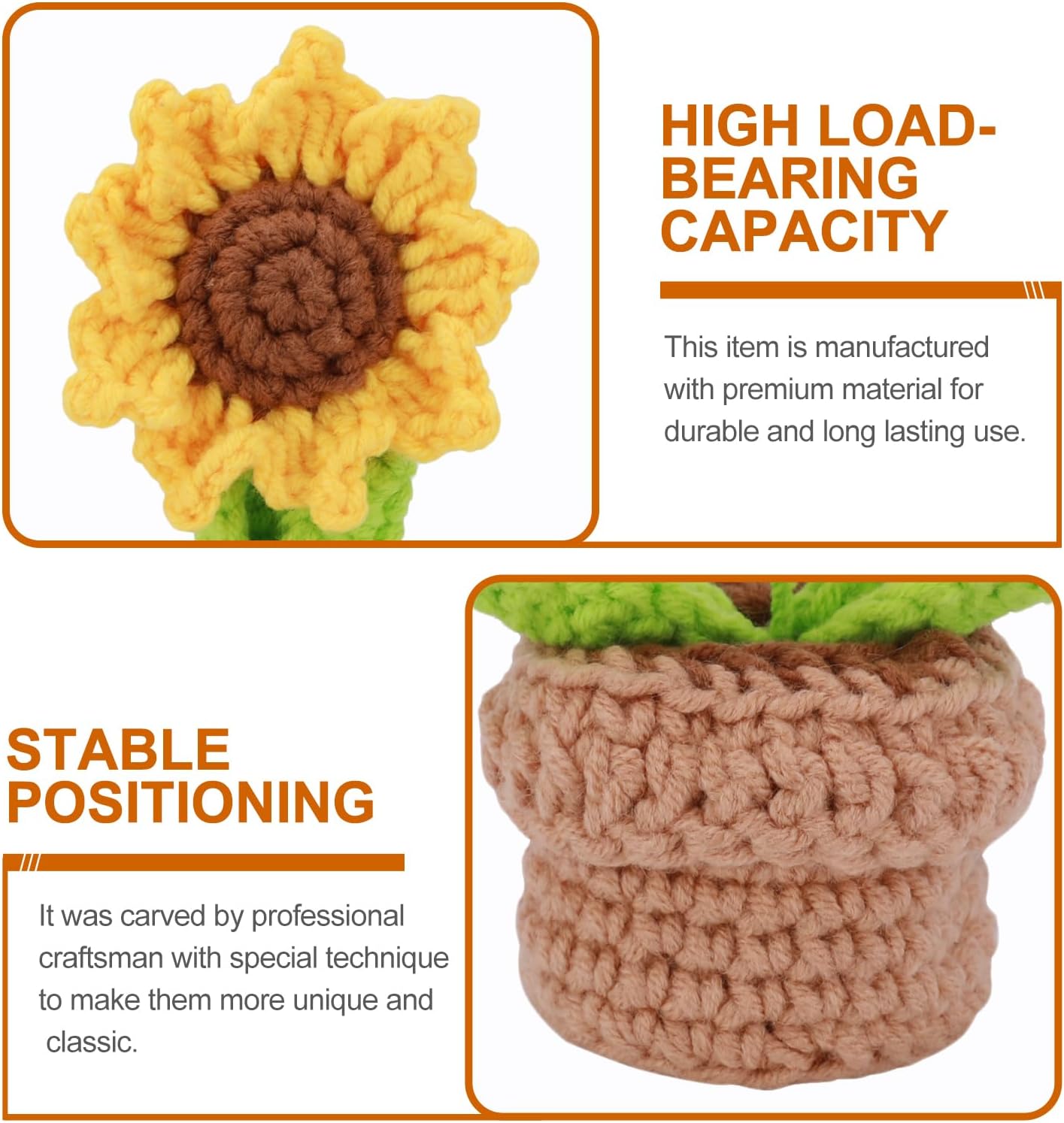 🌻Are you looking for a decoration that never fades and is full of warmth? This crochet sunflower small potted plant is your ideal choice! 🏡This exquisite sunflower ornament is dotted on your dining table, desk or bedroom. Whether it is a sunny morning or a quiet night, it will add a touch of warmth and vitality to your living space. 💡This crochet sunflower small potted plant made of wool has a realistic shape, a warm feel, and never fades, symbolizing eternal blessings. Whether it is used as a home decoration or as a gift to relatives and friends, it is an excellent choice. On special days such as anniversaries, birthdays, weddings, Mother's Day, etc., it can convey the best thoughts to you. Come and buy this crochet sunflower small potted plant to add a timeless beauty to your living space! Description: Name: Crochet sunflower small potted ornaments Material: wool Product size: Pot base diameter is about 5cm Total height is about 10-13cm Flower diameter is 4-6cm Package list: 1*Sunflower potted ornaments