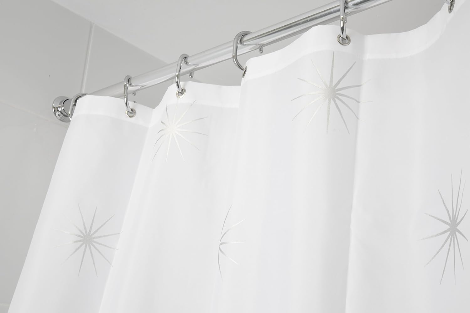 Our extensive range of shower curtains offers a numerous choice of colour, material, size and style. Select with the knowledge that quality will always be of the highest standard. The Stellar Textile Shower Curtain is made of a water resistant fabric that is 100% polyester. The curtain is neatly hemmed all round and the bottom hem includes a weight to ensure that the curtain hangs straight and does not cling to the user when wet. This curtain is machine washable at 40 degrees so easy to clean. The twelve corrosion resistant metal eyelets have a smart white painted finish making the curtain ready to hang straight away.With over 90 years experience in supplying household and bathroom products to UK and overseas markets, Croydex offers a range of bathroom refreshment products in a broad variety of categories and designs.