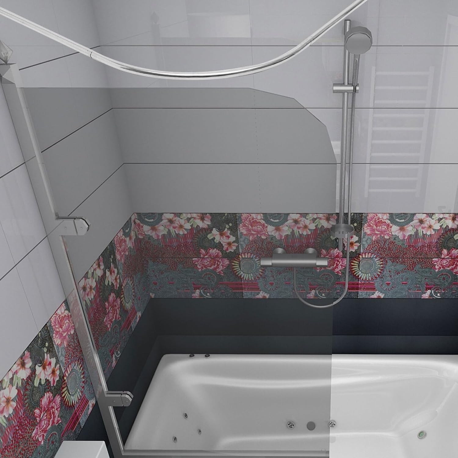 Package List 1 x Curved Shower Curtain Rod 1 x Glue Features -Size:90.00X70.00X9.00cm/35.37X27.51X3.54in -Color:Silver -Note: Telescopic range: 70-95cm, 90-130cm curtain rod adjustable -Material:Stainless steel -Product Info:Arc telescopic rod - This multi-functional tension loaded curtain rod is easy to install, just operate it easily shower curtain rods. - This telescopic pole has good bearing ability, and can be fixed on the wall stably to avoid falling off shower tension rod. - Our Multipurpose Telescopic Rod is a very practical clothes drying pole, curtain rod, closet rail, etc shower rod tension. - The surface is smooth and comfortable to touch, don't have to worry about hurting your hands when using this rod metal curtain rods. - Telescopic Rod is very convenient, which allows you to adjust it to the length according to your different needs shower rods for bathroom tension.Goods Informationtelescoping curtain rod The modern and fashionable appearance of the tension rod makes it easy to match well with most home decorating styles.bathroom curtain stick With telescoping structure, the heavy-duty curtain rod can be adjusted freely and is suitable for many places and scenes