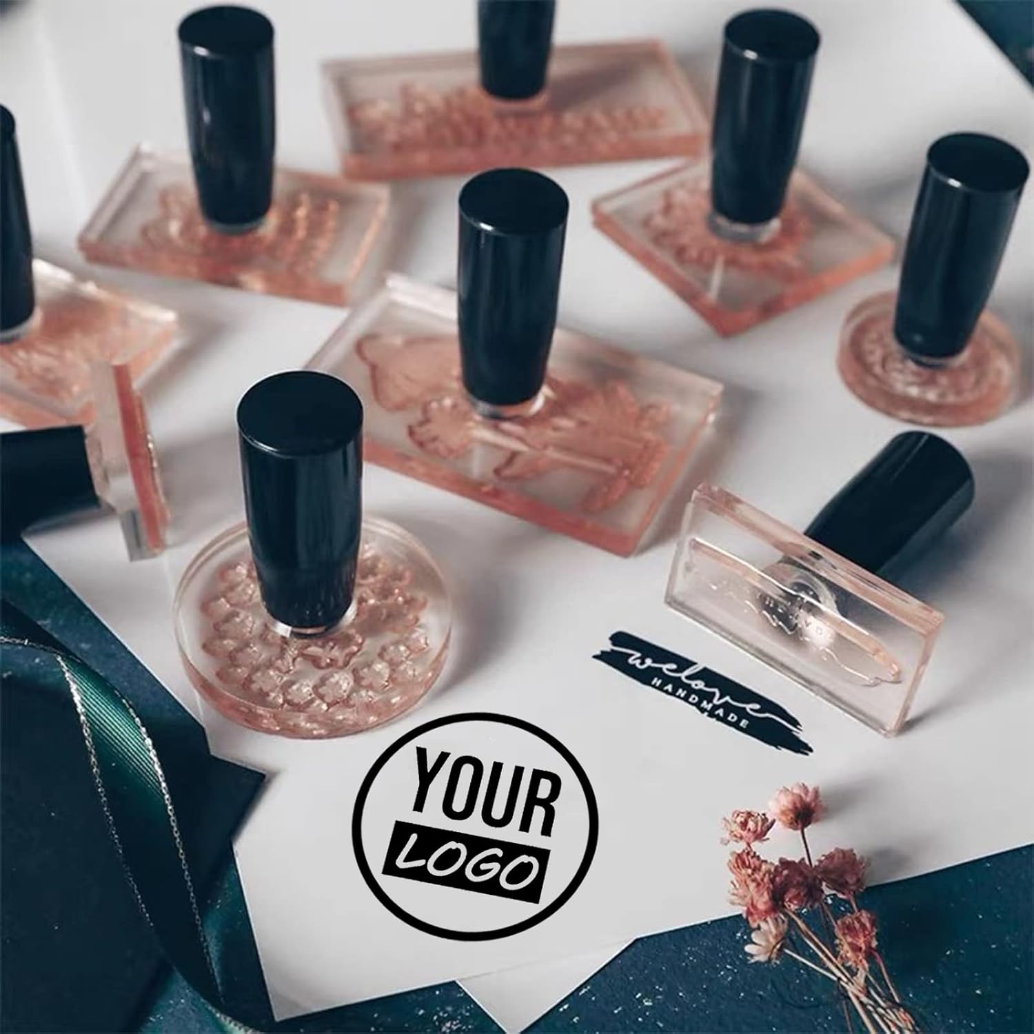 • Customizable Design: Our custom stamp allows you to create a unique stamp with your custom design or text, including custom stamp logos or business logos. You can also choose from a variety of sizes and shapes to create personalized stamps for crafting, organizing, or other uses.