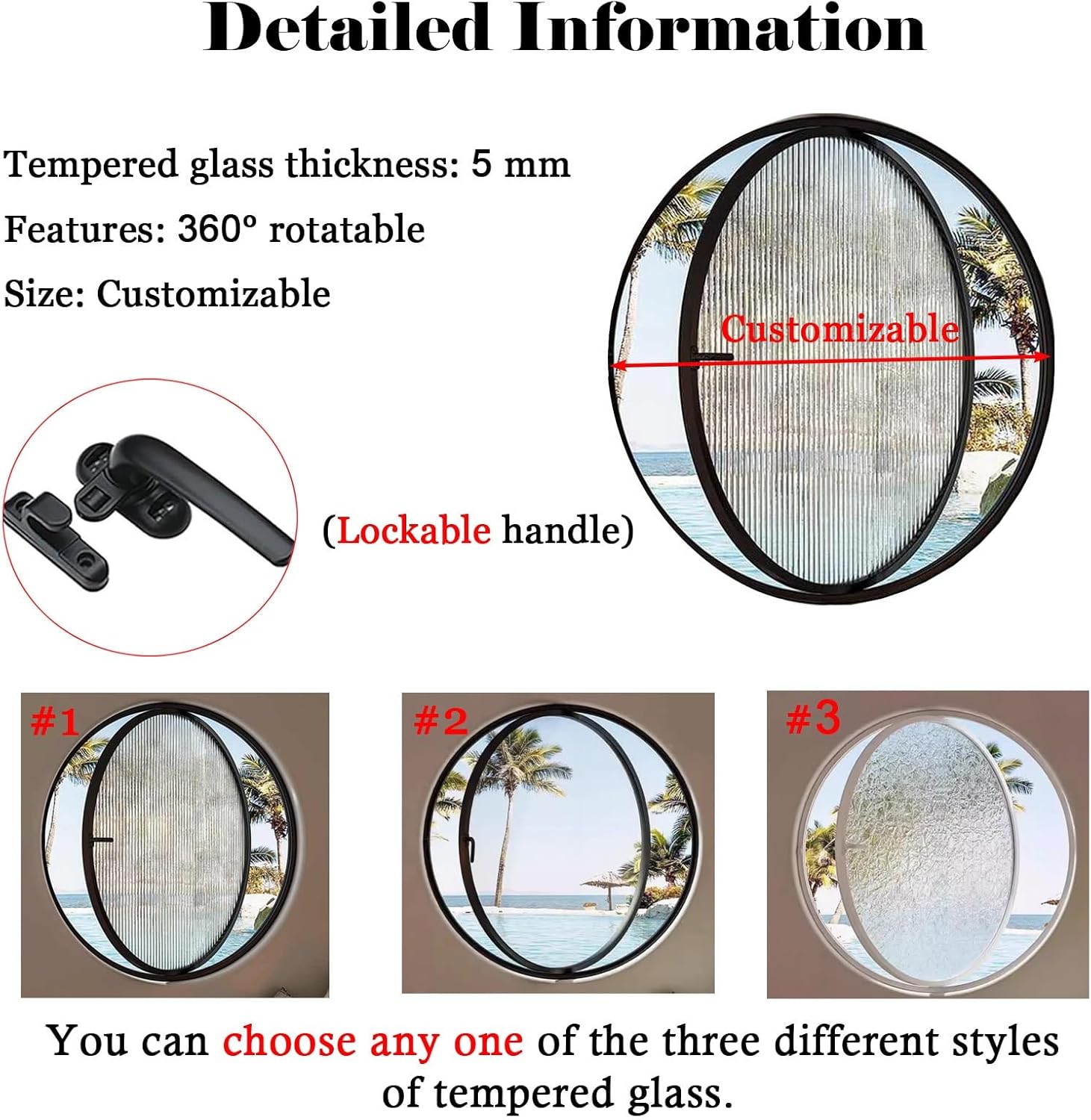 Description:-- 360° rotatable window with tempered glass and lockable handle, ventilation without dead angle, suitable for installation in bathrooms, kitchens, warehouses and other places.Specification:-- Material: Aluminum + Tempered Glass-- Tempered Glass Thickness: 5 mm-- Aluminum Frame Thickness: 2 cm/ 0.8 inch-- Width: Customizable-- Height: Customizable-- Features: 360° rotatableFeatures:-- 5 mm thick toughened glass is sound and heat insulating and unbreakable.-- Customized sizes and colors are available.-- Simple to install and easy to operate.-- Aluminium window frames have a long service life.-- It can rotate 360 degrees vertically.Package Included:-- 1 x Shed Windows(Does not include other items shown in the pictures.)Note:-- There may be some differences between the picture and the product due to display and lighting, please refer to the actual product.-- Because it is processed by hand, the finished product usually has an error of 1-2 cm, please understand.