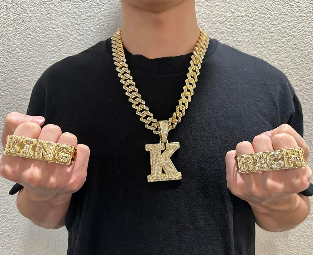 Customize ice out letter 14k gold plated brass material two finger and three finger ring