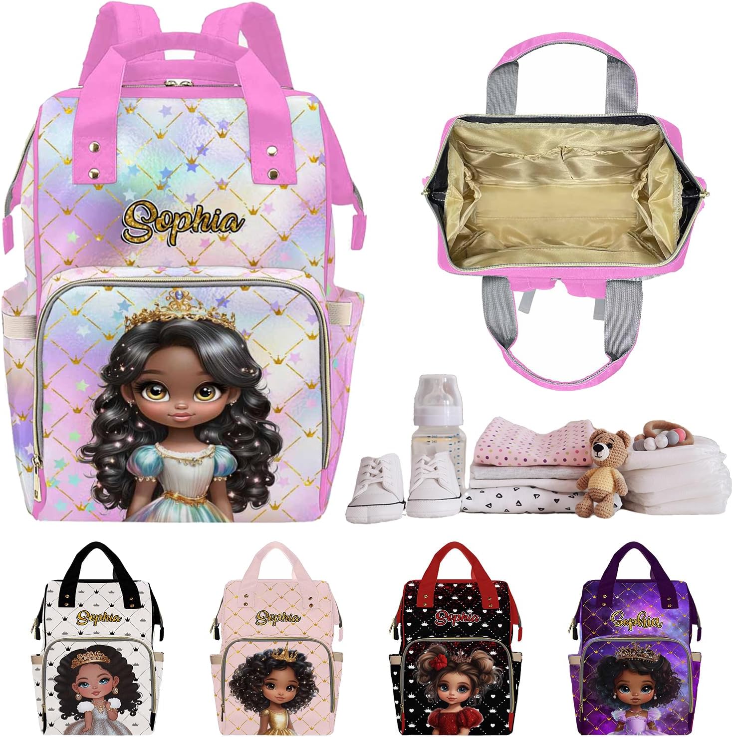 Our custom-designed diaper bags blend style and practicality seamlessly. Tailored specifically for new mothers, these bags offer generous space for all your baby essentials while keeping everything neatly organized. Made from high-quality, durable materials, each bag can be personalized to meet your unique needs--whether you need extra compartments for diapers, bottles, and wipes or a special touch like custom embroidery or a unique color scheme. The adjustable straps ensure comfort, making it easy to carry, and the robust design guarantees long-asting use. Choose your desired features and design elements to create the perfect bag that fits your lifestyle. Stay organized, chic, and ready for anything with your custom mommy bag!