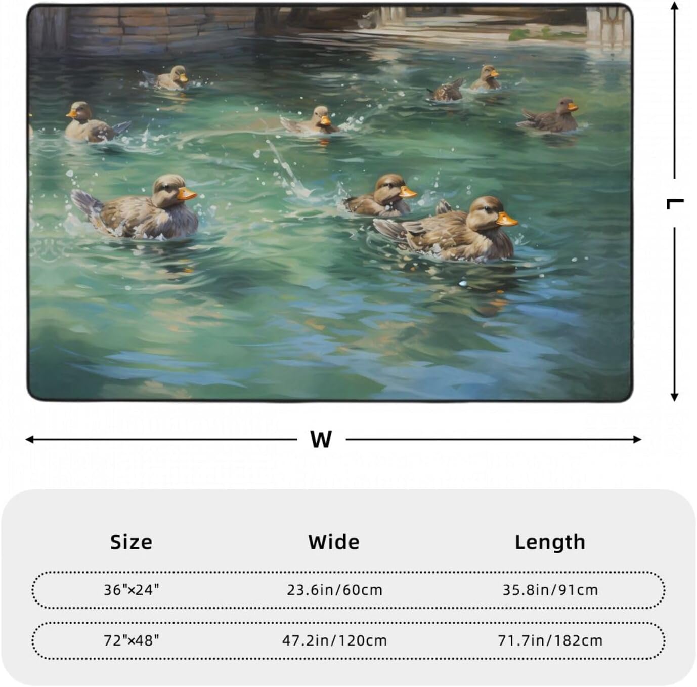 Transform your home with the exquisite WZYWHJ Cute Duck Printed flannel carpet floor mat 72"x48" . Crafted from high-quality flannel fabric (polyester), this carpet boasts a high density space elastic cotton interlayer that is not only absorbent but also incredibly soft to the touch. The delicate fluff texture adds a touch of luxury while ensuring no pilling or fading over time. The innovative middle layer features a high-density memory sponge that effectively relieves foot pressure, making it a comfortable choice for any room. Suitable for a wide range of scenarios including living rooms, offices, coffee tables, beds, and balconies, this carpet floor mat offers versatility and style. The bottom of the mat is made of non-woven fabric and plastic, providing an anti-slip and durable foundation. Easy to clean, wear-resistant, and lint-free, this WZYWHJ carpet is the perfect blend of comfort, functionality, and durability.