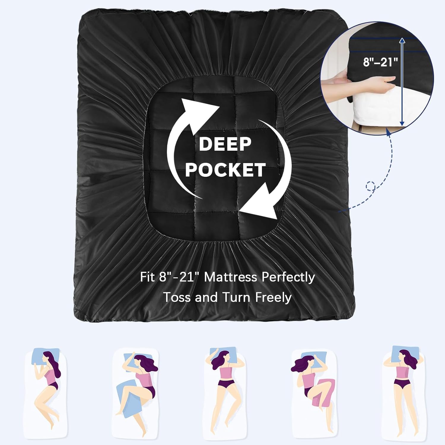 The Cymula Mattress Topper delivers comfortable, breathable support. Engineered for enhanced softness, effortless care, and lasting freshness – enjoy a cooler, more comfortable sleep without breaking the bank. Our premium fiberfill creates a soft, airy loft that gently cushions your body. Unlike dense foams, it promotes excellent airflow to help prevent overheating, keeping you comfortably cool throughout the night. Deep elastic skirt with sturdy corner anchors grips mattresses up to 18 inches. Stays perfectly flat and secure, preventing an