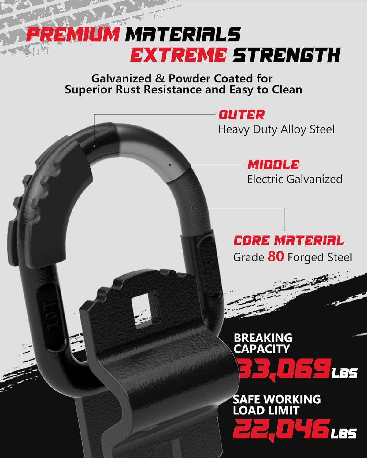 • EASY INSTALLATION-FULL HARDWARE INCLUDED: Comes with 8 bolts and lock nuts for mounting 4 D-rings (2 bolts per ring). No welding or drilling required on the d rings. Can be mounted on wood or metal surfaces with ease. Total load-bearing strength across 4 anchors is 40 tons