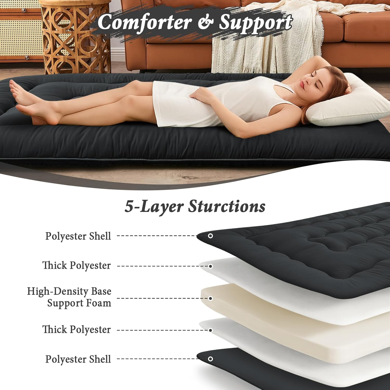 | Included Components | 1x futon mattress,1x Mattress dustproof cover, 1 pair of bandage and 1x storage bag |