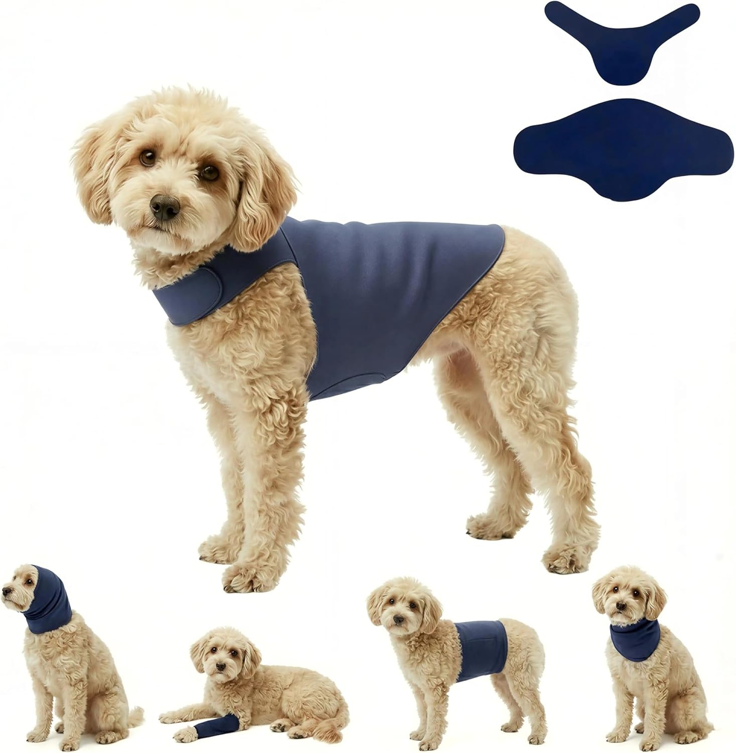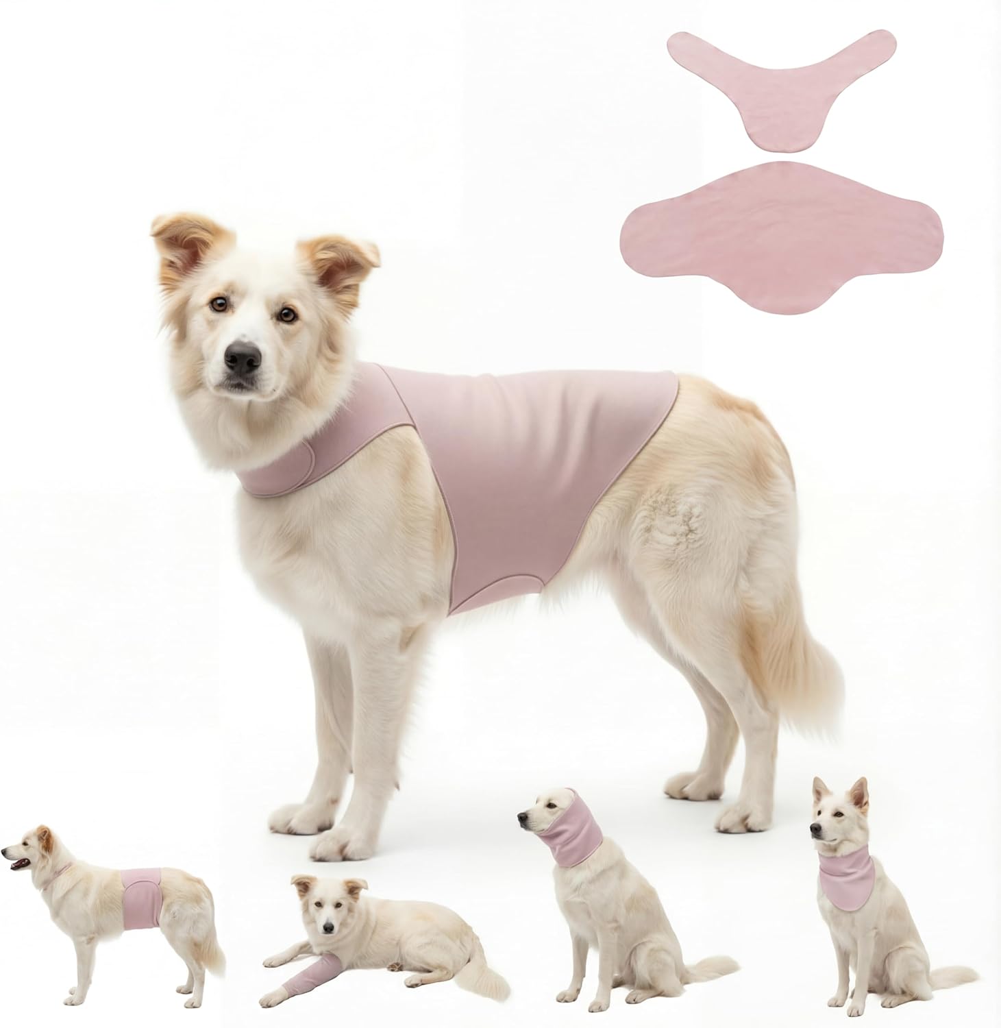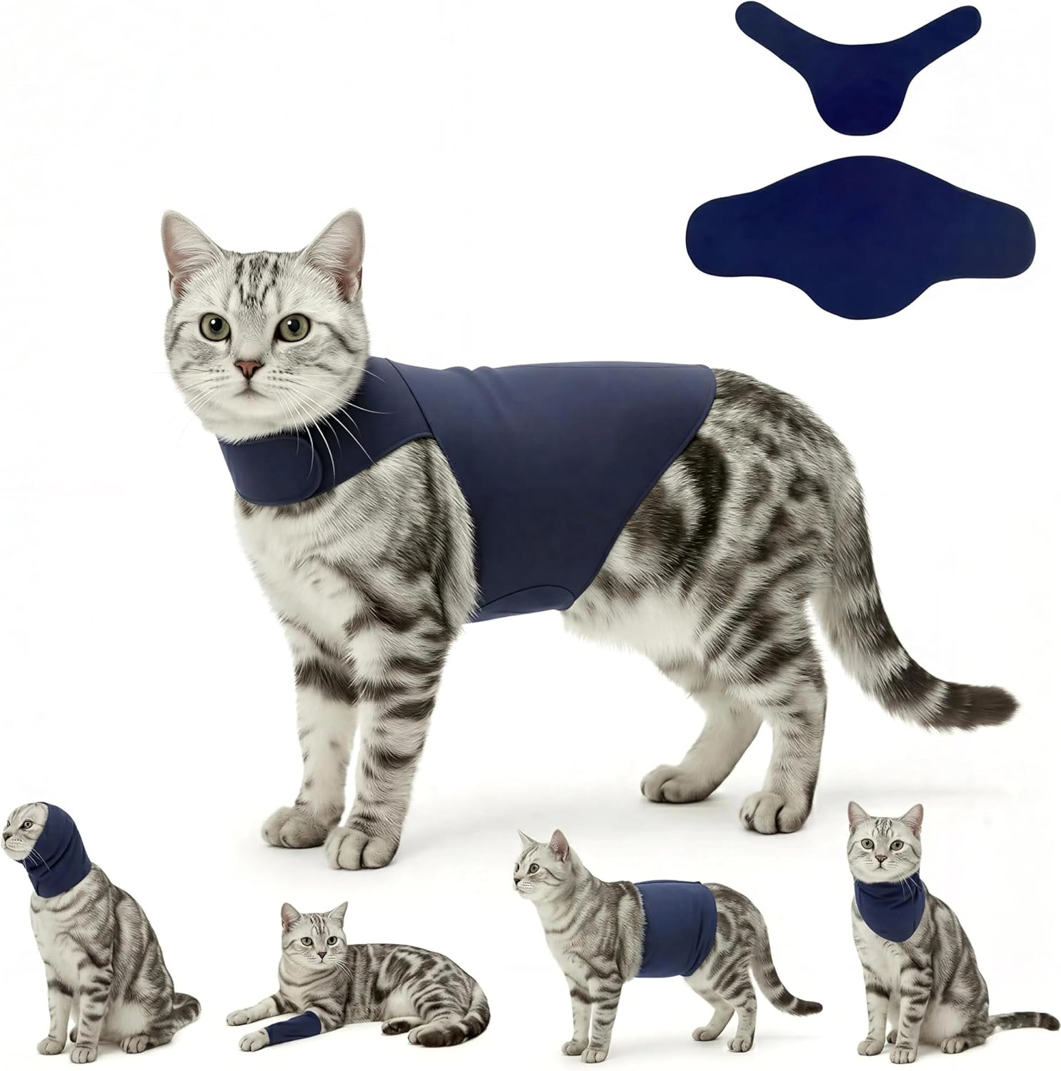 | Additional Features | Reversible, Silent No-Velcro Fabric, Self-Adhesive Material, Detachable Ear Hood, Calming Compression, Post-Surgery Recovery, Wound Protection, Modular Design, 2-Piece Adjustable, Breathable & Soft, Versatile Use, For Dogs & Cats, Quick-fit design, Stretchable |