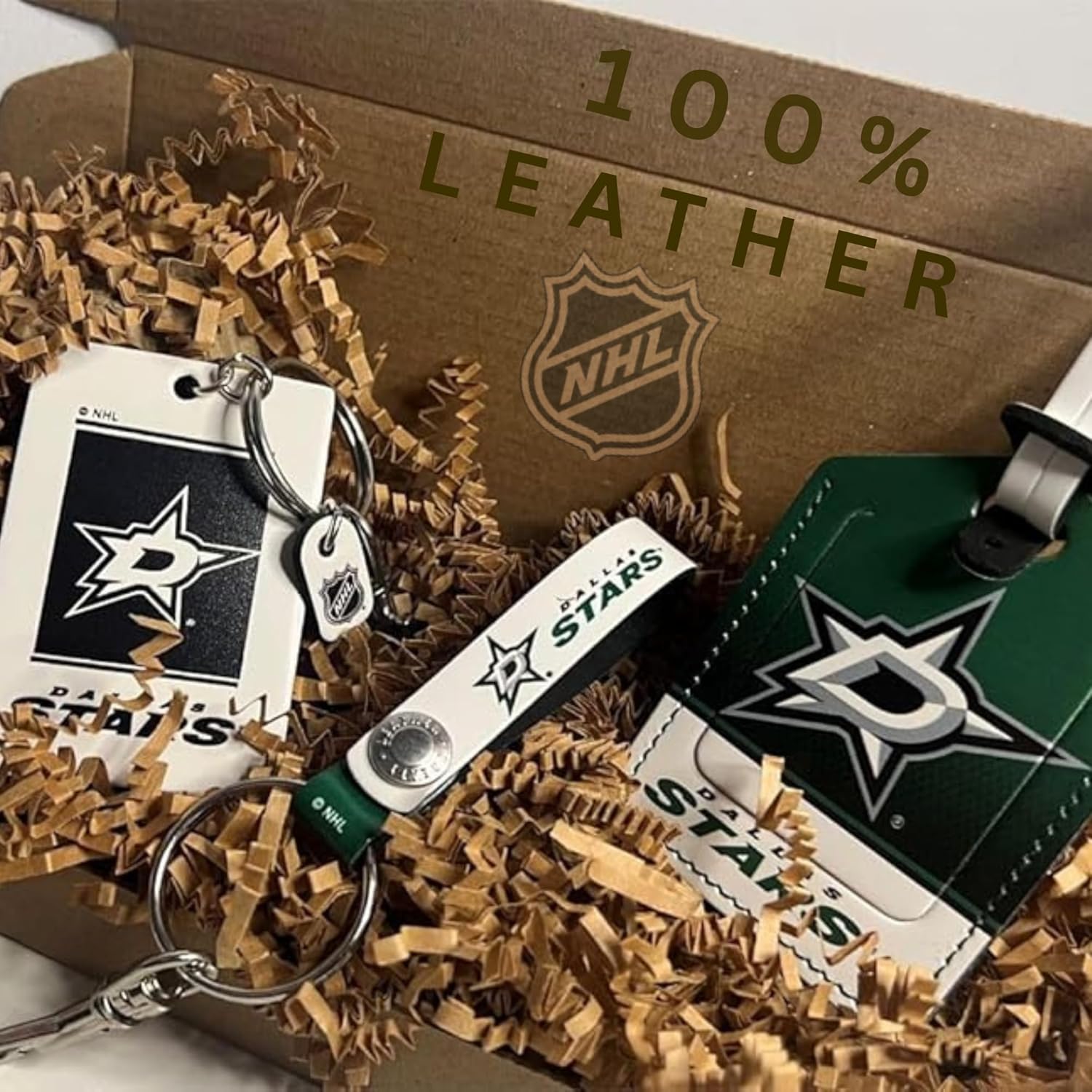 DALLAS STARS Liscensed NHL Three Piece Leather Gift Pack with Personalized Tag Elevate your fan experience! The DALLAS STARS Leather Three-Piece Gift Pack is an essential accessory set for every devoted fan. This NHL-licensed collection combines sophistication with team spirit, making it the perfect gift for yourself or a fellow DALLAS STARS enthusiast. Whether you're heading to a DALLAS STARS game, traveling, or simply showcasing your team pride, this leather gift pack combines practicality with a touch of elegance. Don’t miss out...!!! Get your Gift Pack today and show off your love for the game in style!