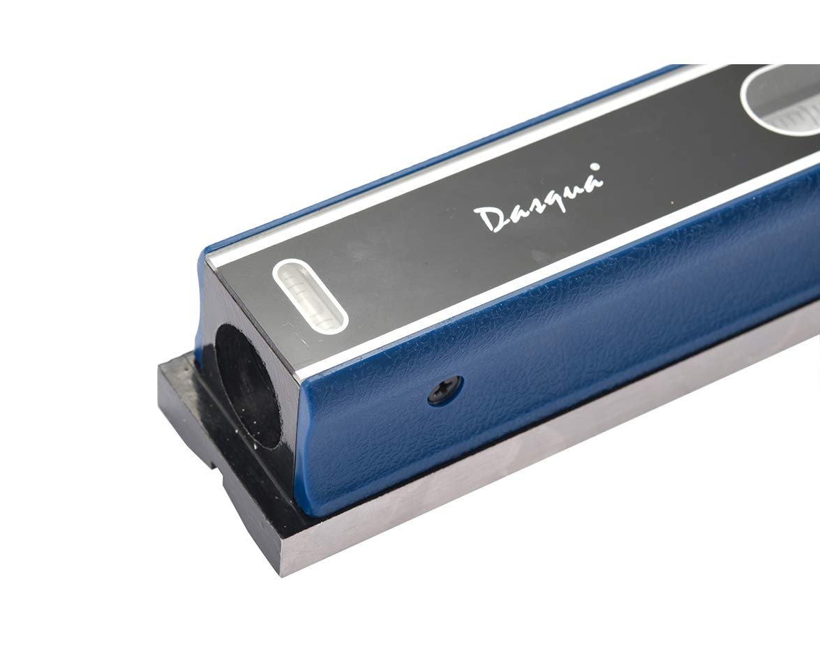 Dasqua 12" master precision level is used to measure the straightness and flatness of machine guide rails. Strictly made in accordance with DIN877. Robust cast iron model with a precision ground measuring surface ensures high accuracy. V-grooved base allows for use on round bars, shafts and cylindrical surfaces. Includes a main vial and a cross test vial. High-sensitivity bubble with 0.005" graduation. Accuracy is 0.0005" Per 10".