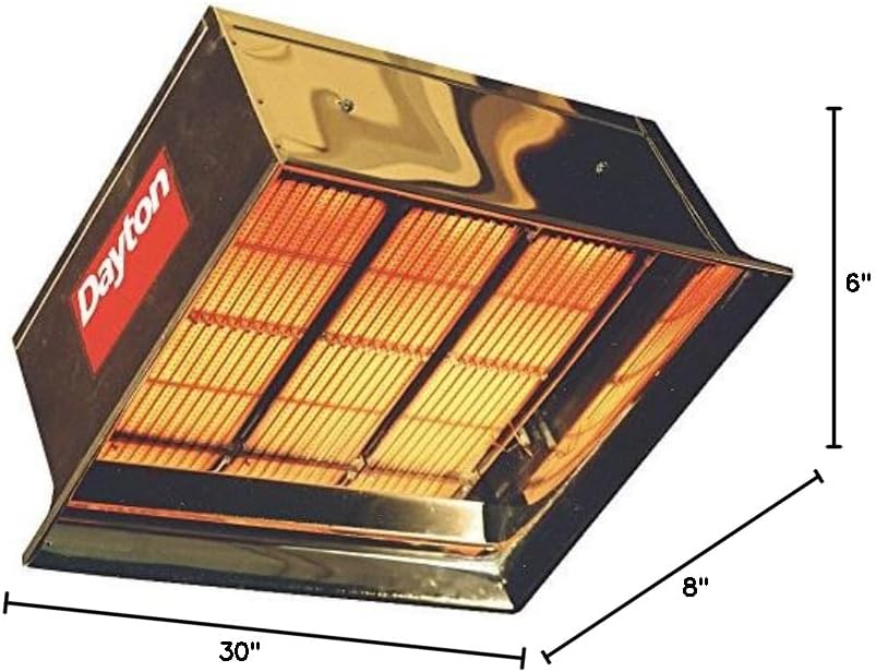 Product Type Suspended Infrared Flat Panel Heater, Fuel Type Propane, Heating Capacity Input 90,000 BtuH, Min. Mounting Height 16 to 18 ft, Floor Coverage @ Minimum Mounting Height 20 ft x 20 ft, Overall Height 22 1/2 in, Overall Width 26 5/8 in, Overall Depth 15 1/4 in, Mounting Height 18 to 20 ft, Typical Coverage @ Mounting Height 24 ft x 24 ft, Mounting Location Ceiling, Mounting Type Chain Suspension, For Use Indoors/Outdoors Indoor Use Only, Control Voltage 120 V AC, Frequency 60 Hz