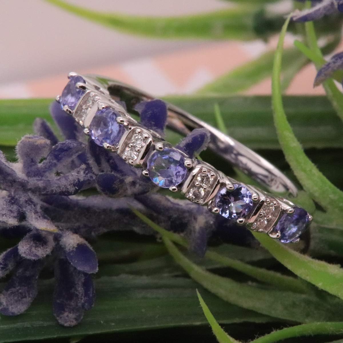 Dazzlingrock Collection Round Tanzanite & White Natural Diamond Women Stackable Wedding Band, 14K White Real Solid Gold