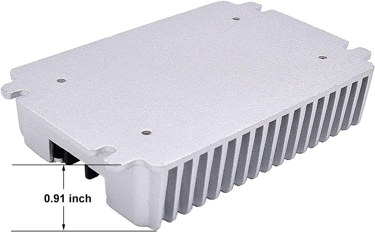 Features: - DC-DC 24V down to 12V 30A 360W voltage transformer - High reliability and conversion efficiency, wide input voltage range - Die-cast aluminum shell for achieving natural heat dissipation, waterproof, dustproof and shockproof - Built-in over-temperature , over-current, over-voltage, output short- circuit protection and input reversing polarity protection - Auto-recovery when device is back to normal operating - Compact in structure, easy to install Kindly Note: 1. Input voltage must be higher than the output voltage, no boost 2. Do not reverse the input and output interface 3. Give preference to stable DC power as the input power supply, or filter it with capacitor If you use the pulsed DC power provided by the generator Specifications: - Input Voltage: DC 24V - Input Range: DC 21V - 36V - Output Voltage: DC 12V - Output Current: 30A - Output Rated Power: 360W - Conversion Efficiency: > 95.5% - No-load Loss: <40mA - Ripple Wave: <70mV - Operating Temperature: -40℃ to +80℃ - Load Regulation: <2% - Voltage Regulation: <1% - Waterproof Rate: IP65 - Housing Material: Die-cast aluminum - Potting Material: Epoxy sealed - Size(L x W x H):110*70*23mm / 4.33*2.76*0.91 inch - Net Weight: 260g Package Includes: 1x DC to DC Step-Down Transformer 4x M-threaded wiring terminals