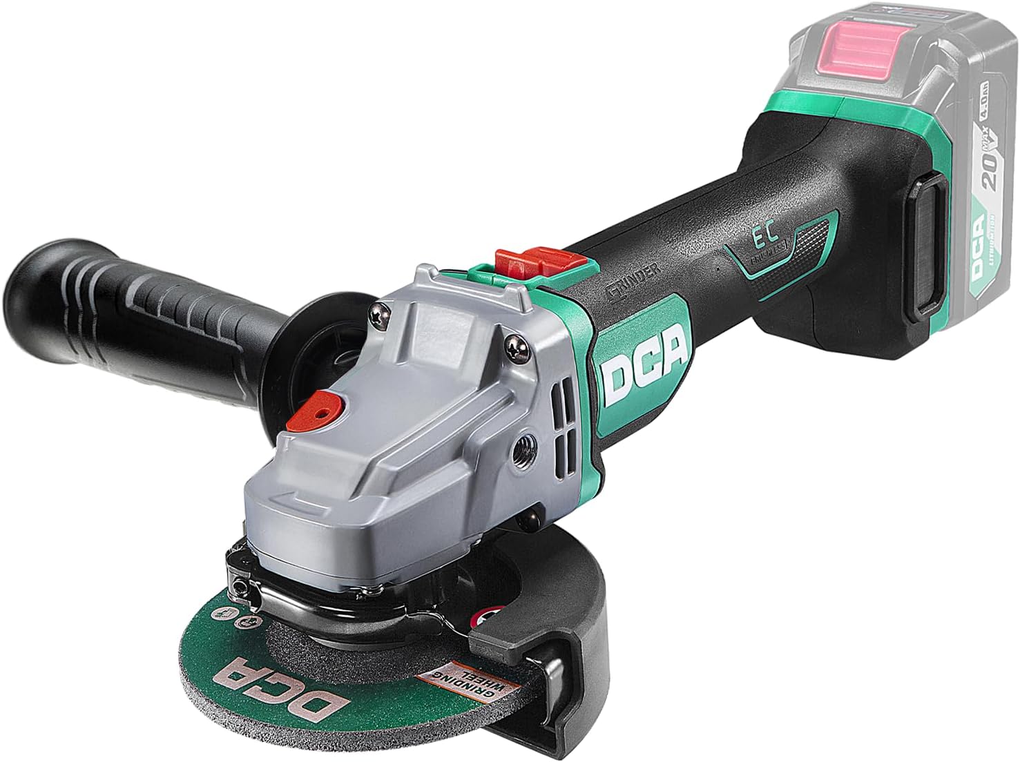 | Included Components | DCA Cordless Angle Grinder x1, 4.0Ah battery x1, 2A charger x1, Tab removal wrench x1, cutting disc x2, abrasive disc x2, Flap wheel x2, Carrying bag x1, Tool-Free sanding guard x1, Tool-Free cutting guard x1, shock absorbing handle x1 |