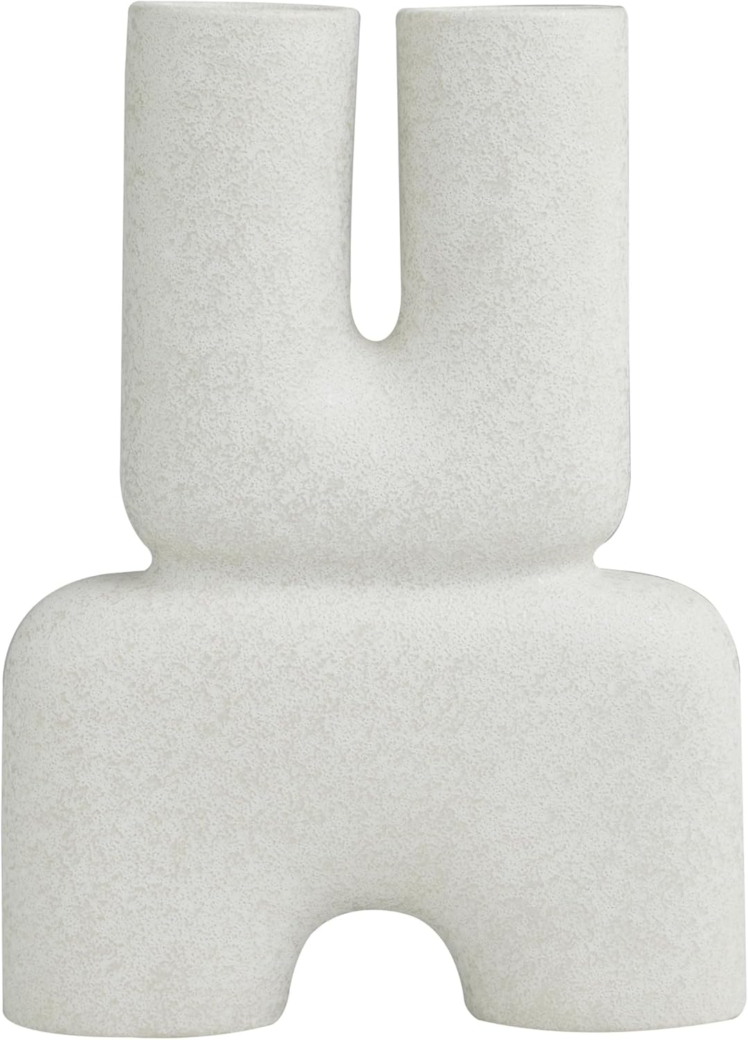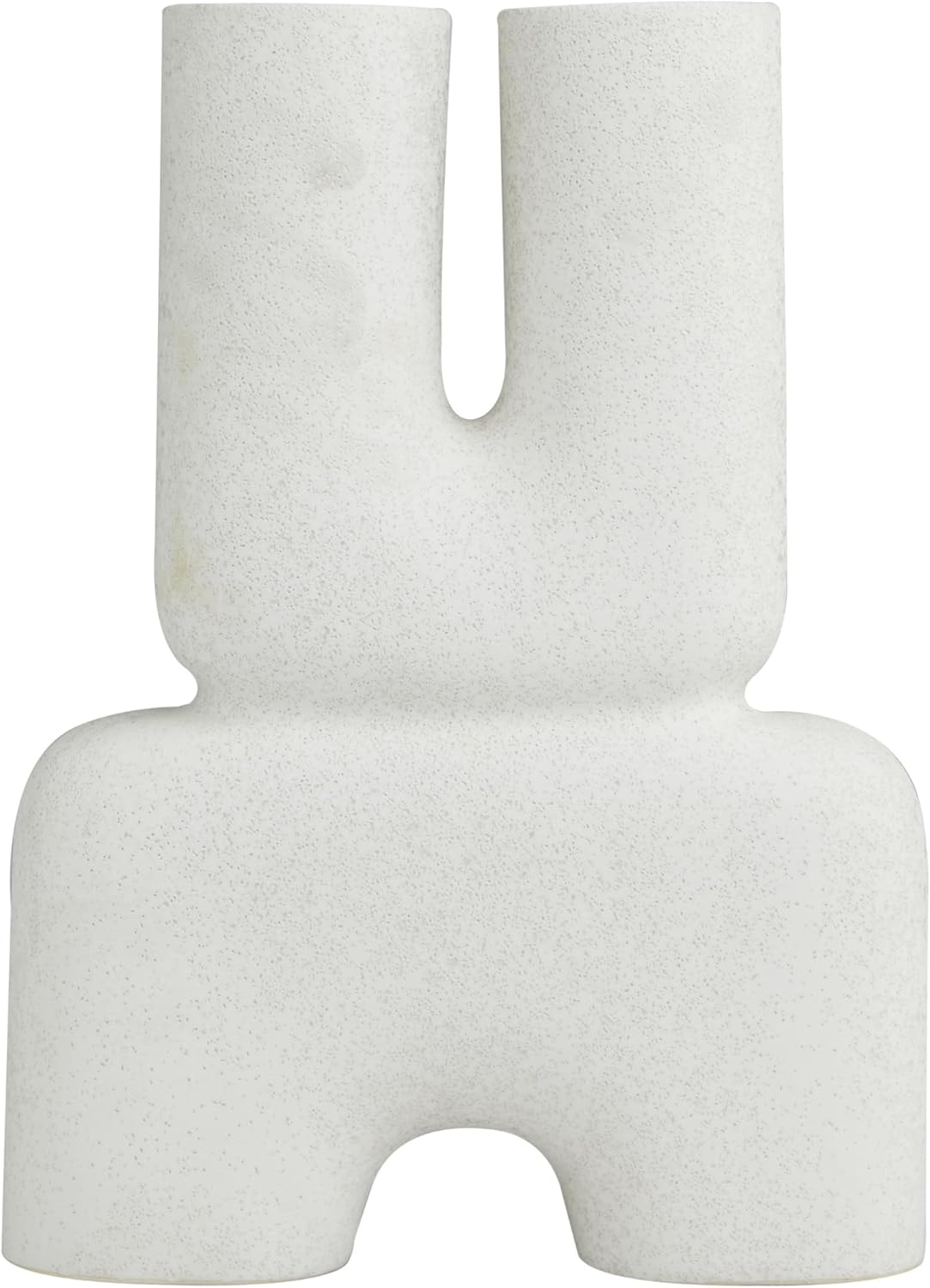 Ceramic is molded into shape, then finished with a white matte and speckled texture creating this contemporary vase for home decor. Sandstone white vase for dried flowers features a U-shaped top with two openings and an N-shaped bottom with two resting points. Wipe clean with a dry cloth. Accessorize your space effortlessly by displaying a beautiful floral arrangement or greenery with this decorative vase. Create a balanced surface space and added dimension with this beautifully crafted vase. Add an alluring focal point in your living room or office space with this abstract centerpiece vase styled with dried pampas grass or vibrant dried flowers. Designed with felt or rubber stoppers at the base that prevent scratching furniture and table tops, as well as sliding around. This item ships in 1 carton. Stoneware vase makes a great gift for any occasion. Suitable for indoor use only. This item ships fully assembled in one piece. This is a single white colored vase. Contemporary style. Vases have 2.70 in, and 2.70 in mouth openings.