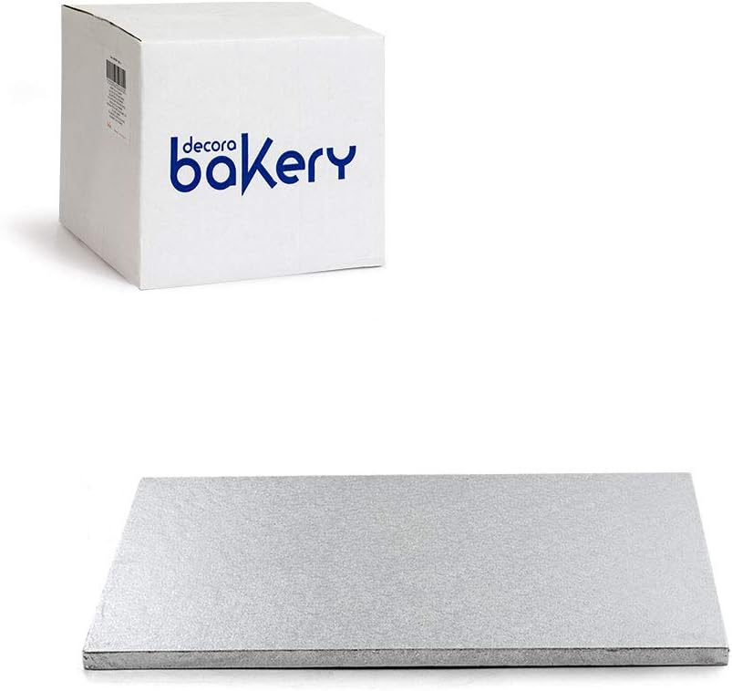 Decora cake board is made of cellulose. Singularly shrink wrapped with aluminium and measures 55 cm length by 55 cm width by 1.2 cm height. Available in Silver colour. comes in square shape.