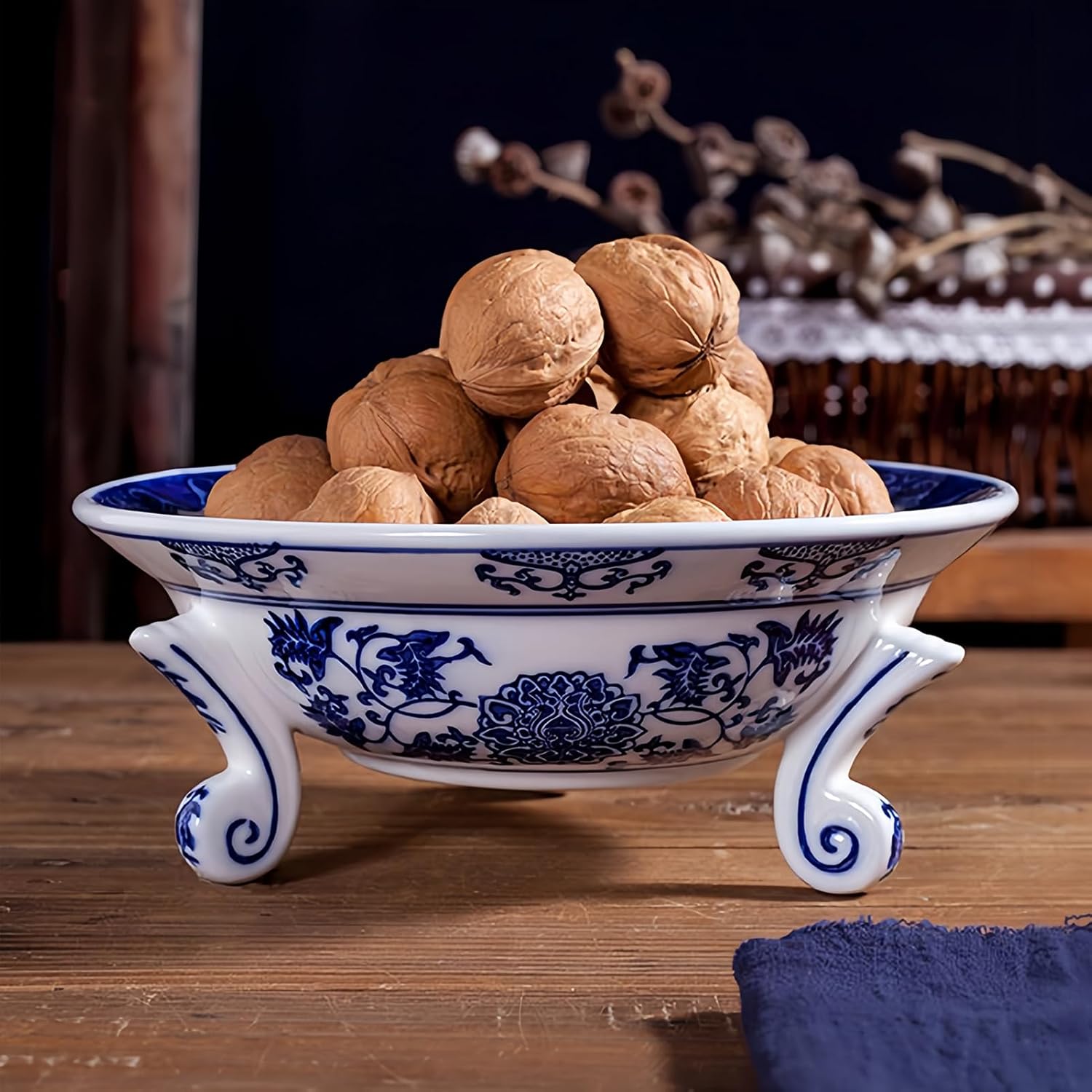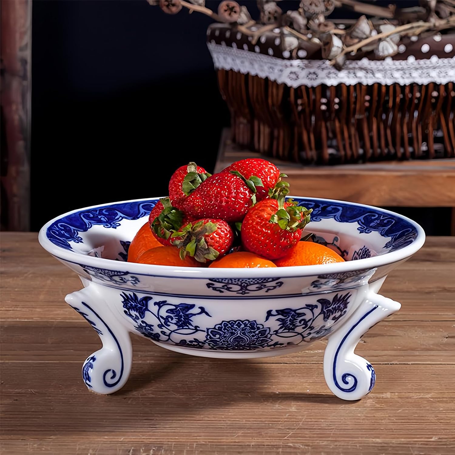 Elevate your home decor with this exquisite blue and white porcelain fruit bowl, featuring classic Chinoiserie patterns that bring timeless elegance to any space. Measuring 10.2 inches in diameter and 3.9 inches in height, this decorative bowl makes a stunning centerpiece for your kitchen counter, dining table, or living room. The intricate blue floral designs against pristine white porcelain showcase traditional artistry, while the graceful curved feet add a sophisticated touch. Perfect for displaying fresh fruits, ornamental objects, or simply as a standalone decorative piece, this versatile bowl combines both beauty and functionality. The bold contrast of the blue and white design creates a striking visual impact that complements both contemporary and traditional interior styles. Each detail, from the delicate rim patterns to the sweeping scroll feet, demonstrates exceptional craftsmanship that transforms this bowl into an artful addition to your home.