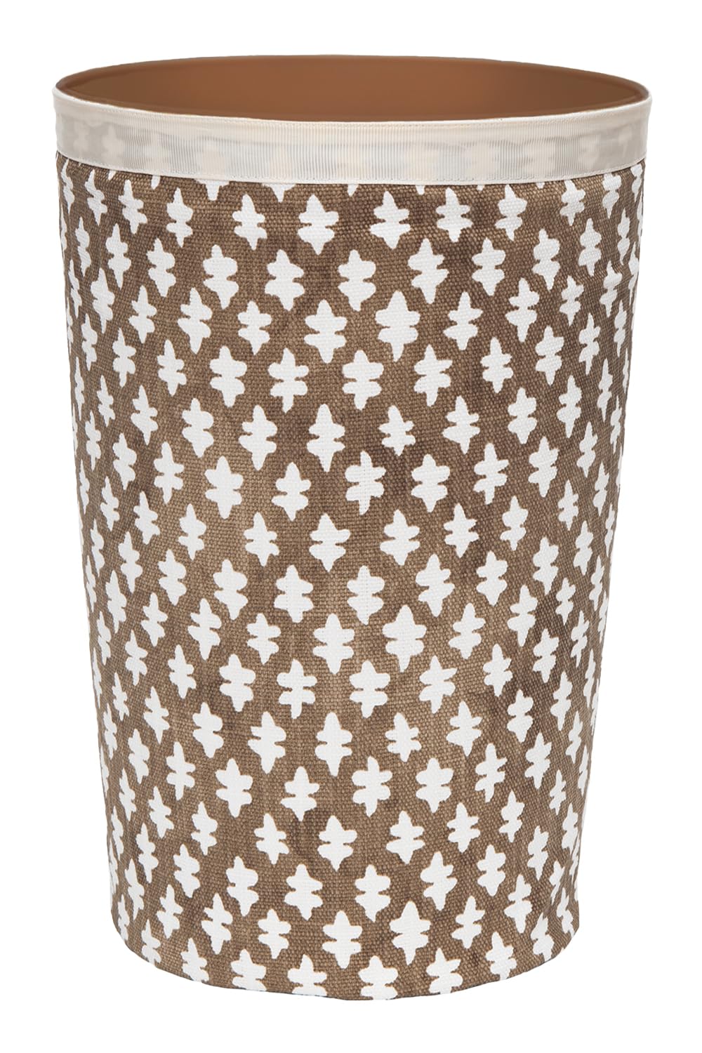 Includes an 11.75" tall small trash can that is made of waterproof plastic and a removable decorative cotton fabric slipcover. Just slip the cover off to wash it if desired. The trash bin is made of plastic, which is suitable for both liquid or messy trash and plain paper trash. The slipcover, which can be removed for washing if necessary, is finished with a decorative one-inch nylon ribbon. Matching tissue box covers are available to make bathroom sets. A great-looking decorative bathroom trash bin for bathroom decor, whether it is a powder room, kids room, or master bath. Also attractive for a bedroom trash can for bedroom decor, or a waste basket for desk decor, cubicle decor, dorm decor.....Perfect powder room ideas, half-bath, or guest bathroom, because this is a relatively small trashcan. A small round trash bin can be ideal for small bathroom decor. Match with other bathroom accessories or room decor. Open-top trash can that holds 8 quarts of trash. Washable cloth cover: hand-wash or gentle cycle, cold water, air-dry. Decorative fabric slipcover is made in USA, plastic wastebasket is imported. Pink and white stripe is great for nursery decor for girls, a girls bedroom and more.