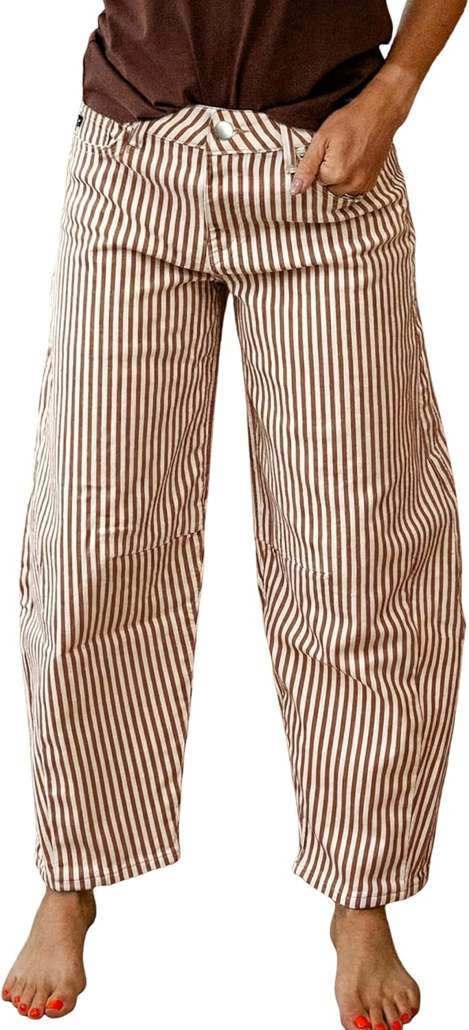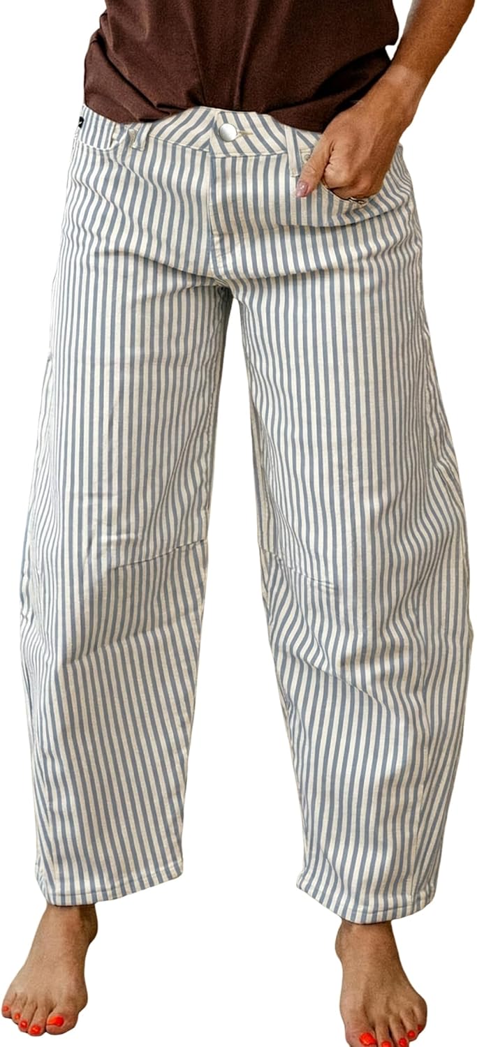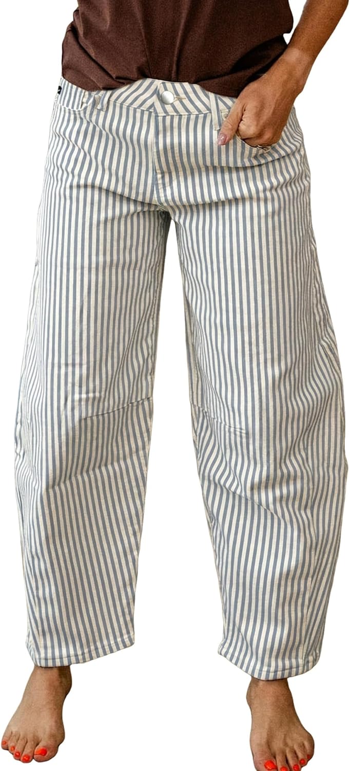 wide leg jeans stretchy casual jeans womens striped jeans Womens High Waist casual Wide Leg Jeans Details & Highlights --Material£º98%Cotton+2%Elastane --The striped pant can be effortlessly pairs with tees, blouses, sweaters, or jackets, suitable for both casual and slightly dressy styles, a must-have basic in your wardrobe. Perfect for daily commutes, shopping, dates, casual gatherings, or even light office wear, adapting to various daily scenarios. --