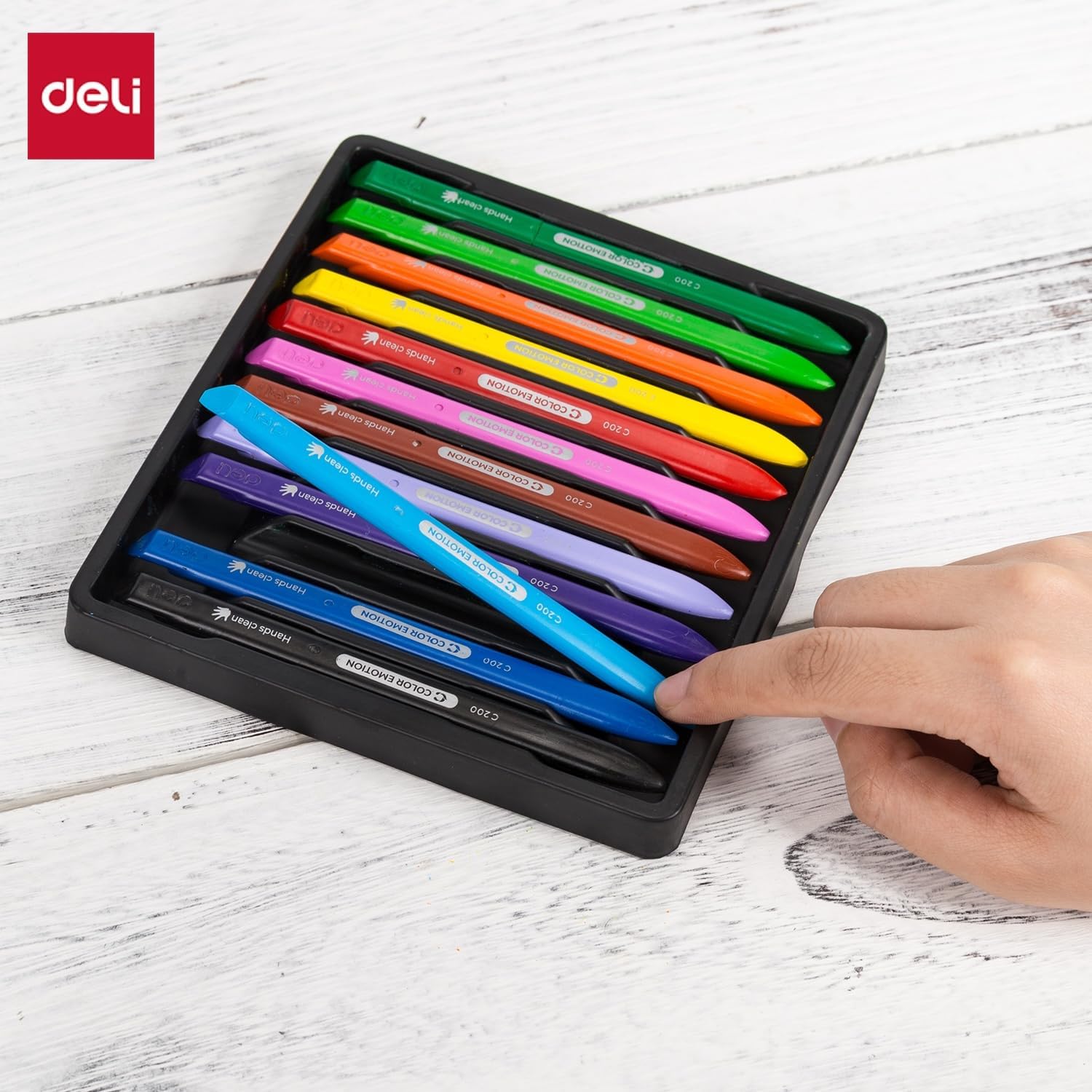 Deli EC20000 Color Emotion Plastic Color Crayon Covered With A Special Non-Toxic Coating That Will Provide Comfortable Drawing And Protect Wax Crayons From Breakage And Hands From Staining. They Have A Convenient Trihedral Shape, So The Child'S Hand Will Not Get Tired During Prolonged Drawing. Comes In 12 Different Colors.