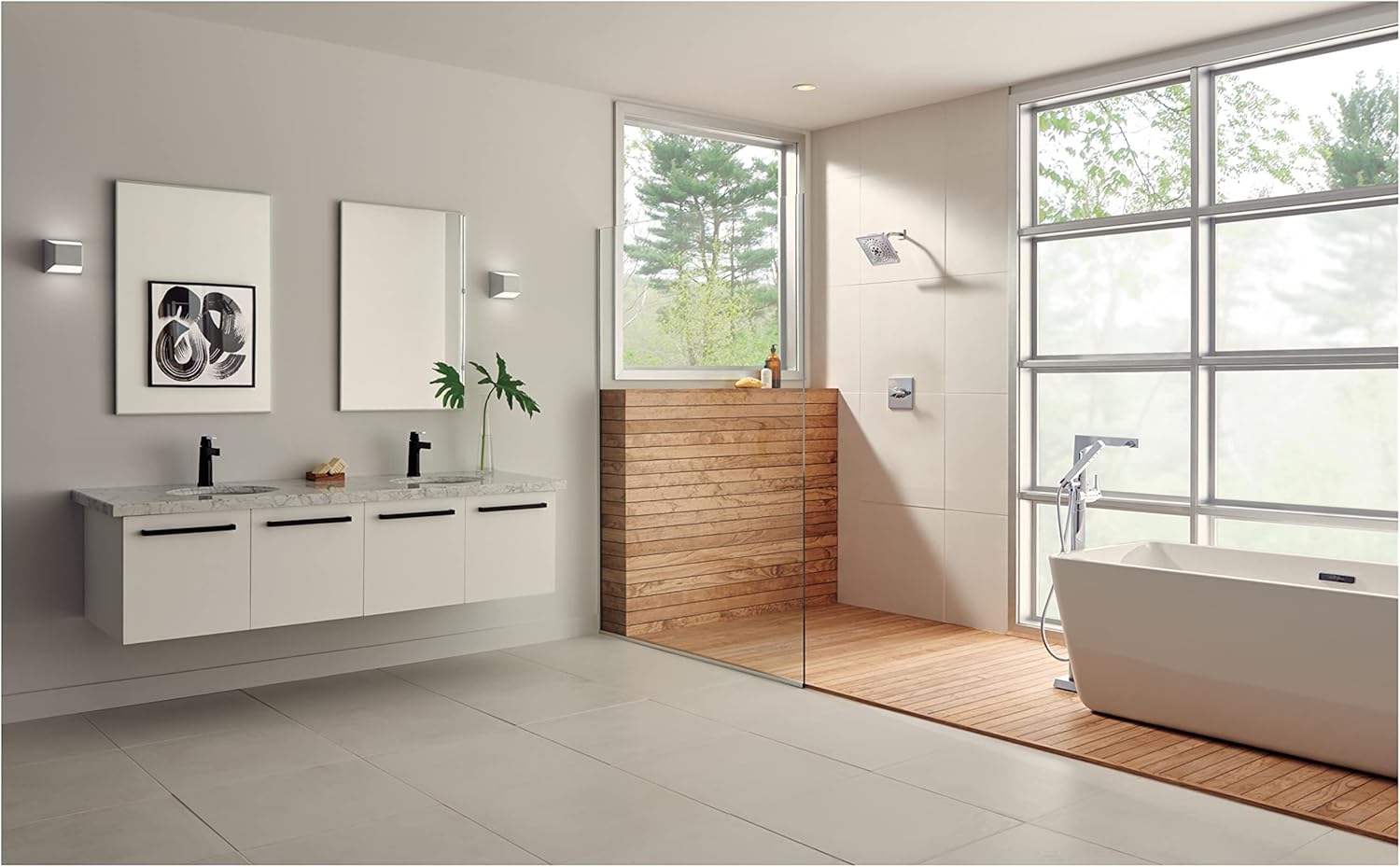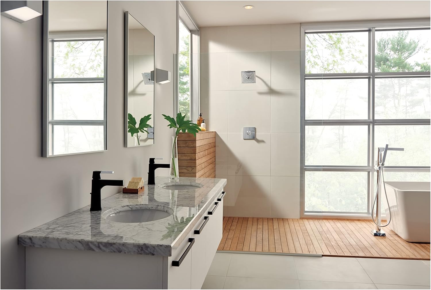 The Zura™ design is a precise marriage of rounded, rectangular and triangular elements and offers innovative, geometric styling to complement Delta's current contemporary lineup. All Delta tub and shower faucets are engineered to keep the water temperature within a safe ±3.6° F (±1.7° C)*. This technology makes sure your family doesn’t experience a sudden and possibly unsafe change in water temperature as a result of running water elsewhere, such as using a dishwasher, flushing a toilet or running a washing machine. Installing a Delta® MultiChoice® Universal Valve makes it faster, easier and less expensive to upgrade style, finish and functionality later. Delta® H2Okinetic® Showers look different because they are different. Using advanced technology, H2Okinetic showers sculpt water into a unique wave pattern, giving you 3X the coverage of a standard shower head.* The end result is a shower that provides more coverage, more warmth and more intensity for a truly drenching shower experience. With separate handles for volume and temperature control, this Delta tub/shower provides a more refined showering experience. Simply set the water at your preferred temperature and turn the shower on or off with the volume control handle - without interrupting your set temperature. While other products may gather unsightly mineral build-up over time, Delta soft rubber Touch-Clean® spray holes allow any mineral residue to simply be wiped away for an instantly refreshed look – with no need for soaking or the aid of chemical cleaners. The pause setting gives you ample space for shaving, lathering and other shower tasks, then easily restarts the water with the temperature where you left off. This spray setting helps you conserve water, so you can worry less about depleting your supply of hot water - and you help the environment too. Matte Black makes a statement in your space, cultivating a sophisticated air and coordinating flawlessly with most other fixtures and accents. With bright tones, Matte Black is undeniably modern with a strong contrast, but it can complement traditional or transitional spaces just as well when paired against warm neutrals for a rustic feel akin to cast iron. Delta WaterSense labeled faucets, showers and toilets use at least 20% less water than the industry standard—saving you money without compromising performance.