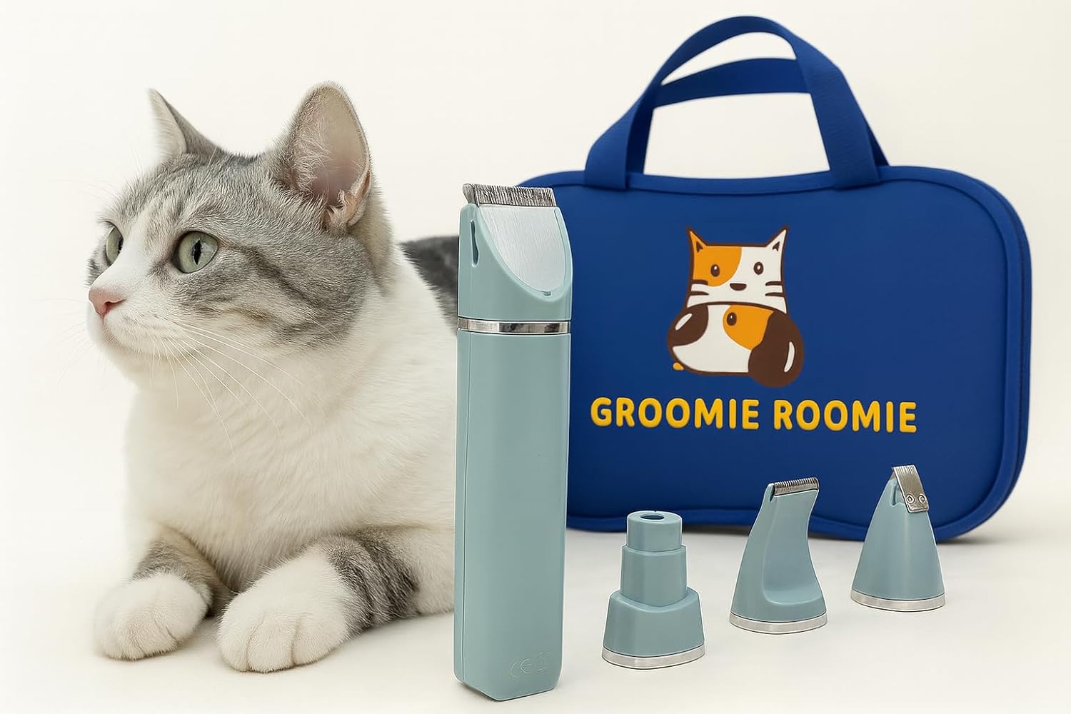 Give your furry friend the salon experience right at home with the Groomie Roomie 16-Piece Pet Grooming Kit — the all-in-one solution for keeping your pet clean, healthy, and happy. Designed for dogs, cats, rabbits, and small animals, this professional-grade Groomie Roomie grooming set includes everything you need for a smooth, stress-free grooming session. Featuring powerful yet quiet clippers, precision scissors, and a gentle nail grinder, the Groomie Roomie Grooming Kit makes trimming, brushing, and deshedding easy and comfortable for your pet. The ergonomic tools fit perfectly in your hand for control and safety, while the low-noise motor keeps even anxious pets calm. Each tool stores neatly in the durable Groomie Roomie travel bag, so you can take your grooming kit anywhere — whether you’re at home or on the go. The included deshedding glove and collapsible travel bowl make everyday care simple, ensuring your pet always looks and feels their best. Why Pet Owners Love the Groomie Roomie Kit ✅ Complete 16-Piece Set: Clippers, nail grinder, scissors, brushes, combs, glove, travel bowl, and more — everything you need in one kit. ✅ Quiet & Safe Trimming: Low-vibration motor keeps pets relaxed while you groom. ✅ Powerful Rechargeable Clippers: Cordless design with long battery life for easy, flexible grooming. ✅ Comfort & Convenience: Lightweight tools, ergonomic design, and easy cleaning. ✅ Portable Storage Bag: The Groomie Roomie carry bag keeps all tools organized and protected — perfect for travel or home use.