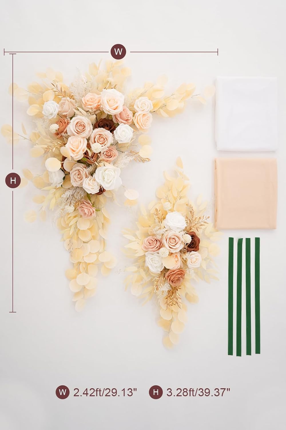 | Included Components | 6m champagne wrinkle-resistant chiffon x1, 6m white wrinkle-resistant chiffon x1, Flowers arrangementx2pcs (1 set), velcro fasteners x4 |
