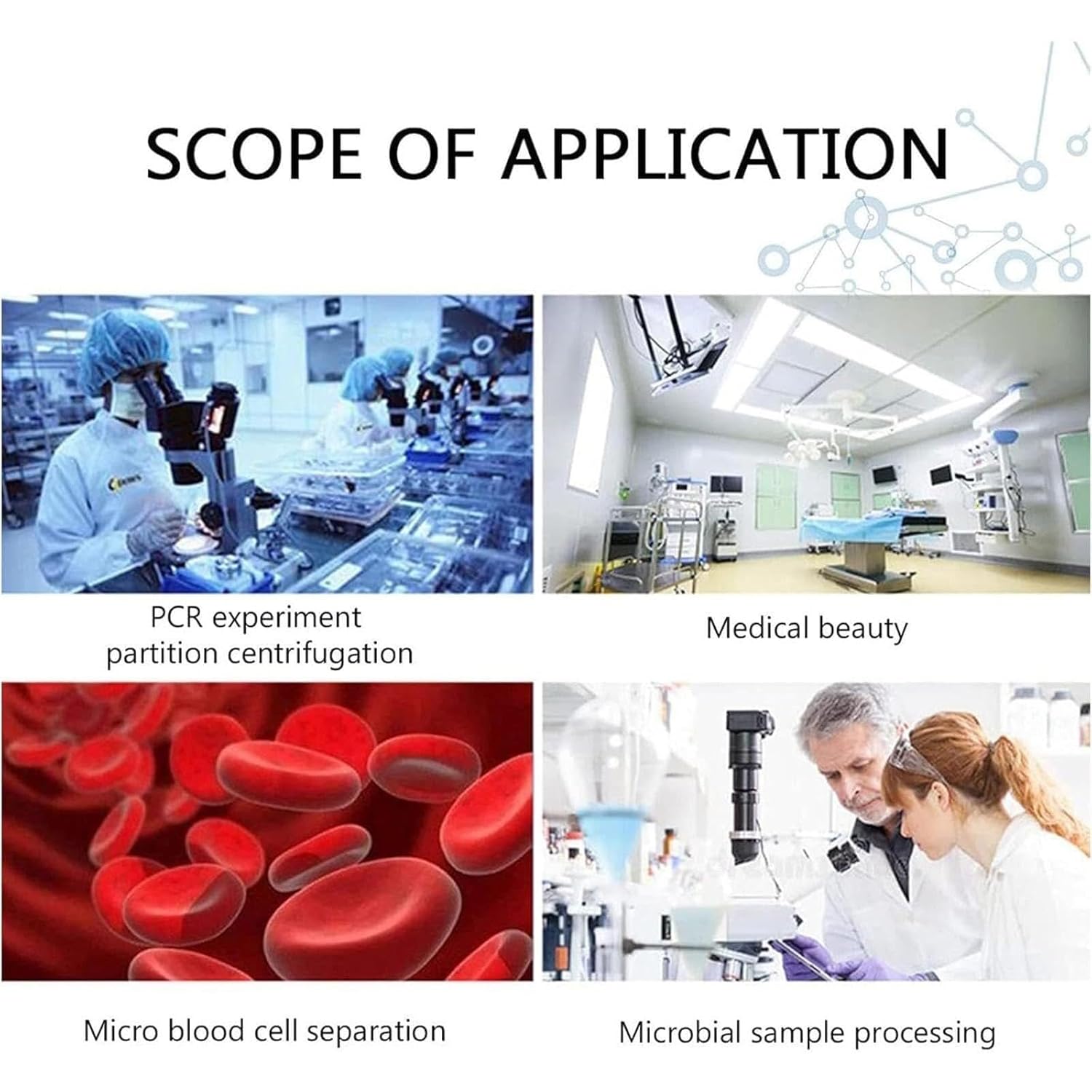 Specifications:Name: CentrifugeAngle rotor: 50ml*6Speed range (rpm): 0-4000Timing range (min): 0-99minMaximum relative centrifugal force (XG): 0-2100Centrifugal radius: 120mmRotor material: 120mmMachine power (W): 200Display mode: LCDWith cover protection: Yes<;55Power supply voltage: 100-240V universalSpeed increment (decrease): 10rpmRelative centrifugal force increment (decrease): 1XGMachine size (mm): W: 300mm D: 360mm H: 360mmNet weight (kg): 11Packing weight (kg): 13Packing list:1 x Centrifuge1 x User manual