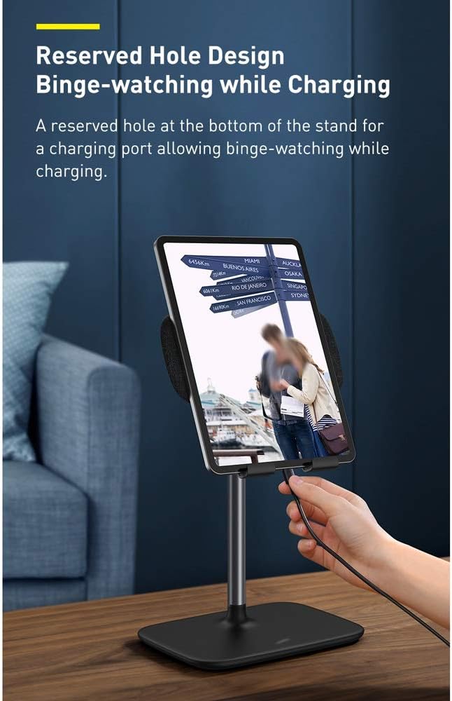 Name:Indoorsy Youth Tablet Desk StandMaterial:ABS+ AlloyColor:White/BlackWeight:850gFree to Adjust the Height:Adjustable height from 270mm to 350mm for enjoying binge -watching in an appropriate posture.10°~ 45° upward and downward rotation angle to correct the bad habit of hunching over in online course.Instant Stability ,Easy and Convenient:Place and take the tablet with hand, easy to use.Select Woven Fabric Upgraded Appearance:Woven fabric and metal rod support for better appearance, durability and increased friction against dropping.For Different Types of Tablets Made for Tablets Compatible with any types of 5.5~21.5 inch tablets.Reserved Hole Design:Binge-watching while Charging A reserved hole at the bottom of the stand for a charging port allowing binge-watching while charging.Package Included:1* Mobile Phone Holder Stand(Accessory only, Phone not included.)Note: The colors deviation might differ due to different monitor .Manual measuring, please allow 1 ~ 3mm error,thank you.Various Using Occasions: varying for using mobile phone to watch movies & enjoy music in the bedroom, headboard,bathroom,desk, kitchen, gym and office, free your hands.Designed with a non-slip silicone base, the holder will not scratch the surface of your furniture.